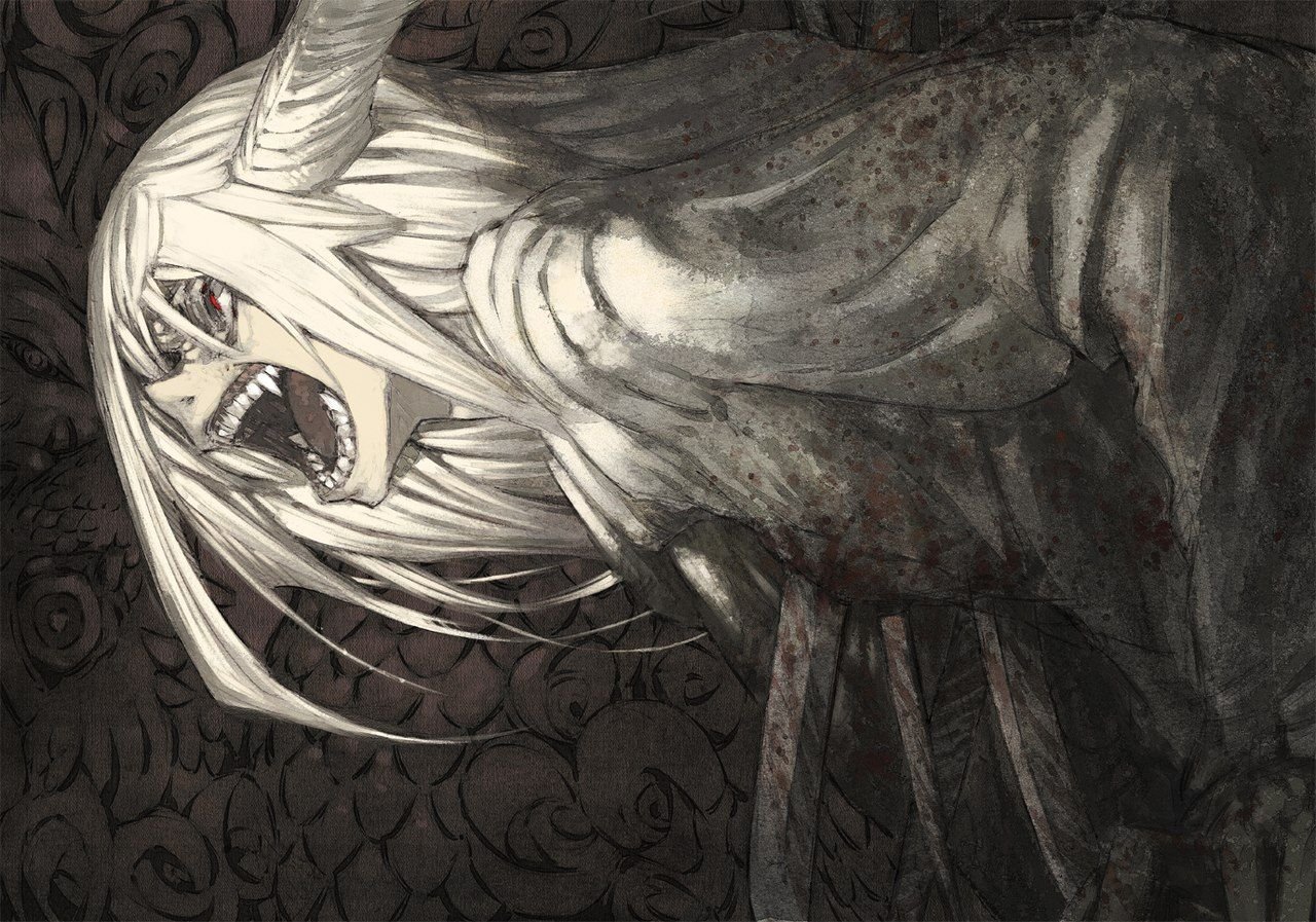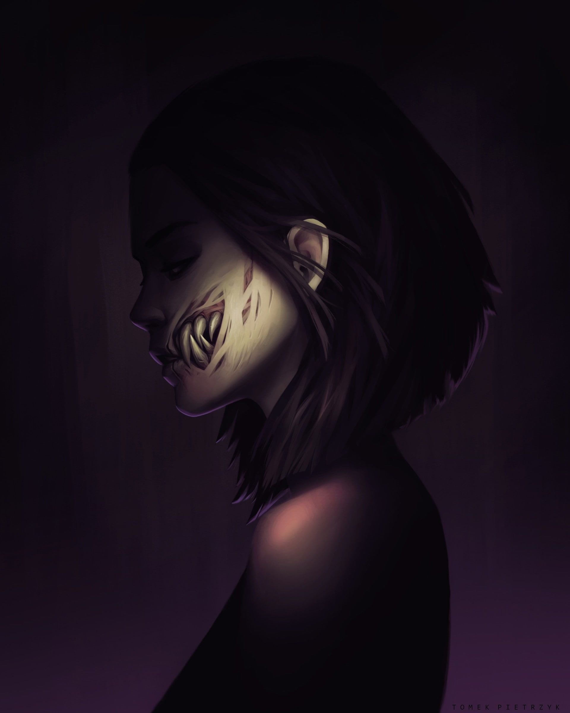 ![Девочка с острыми зубами арт]()