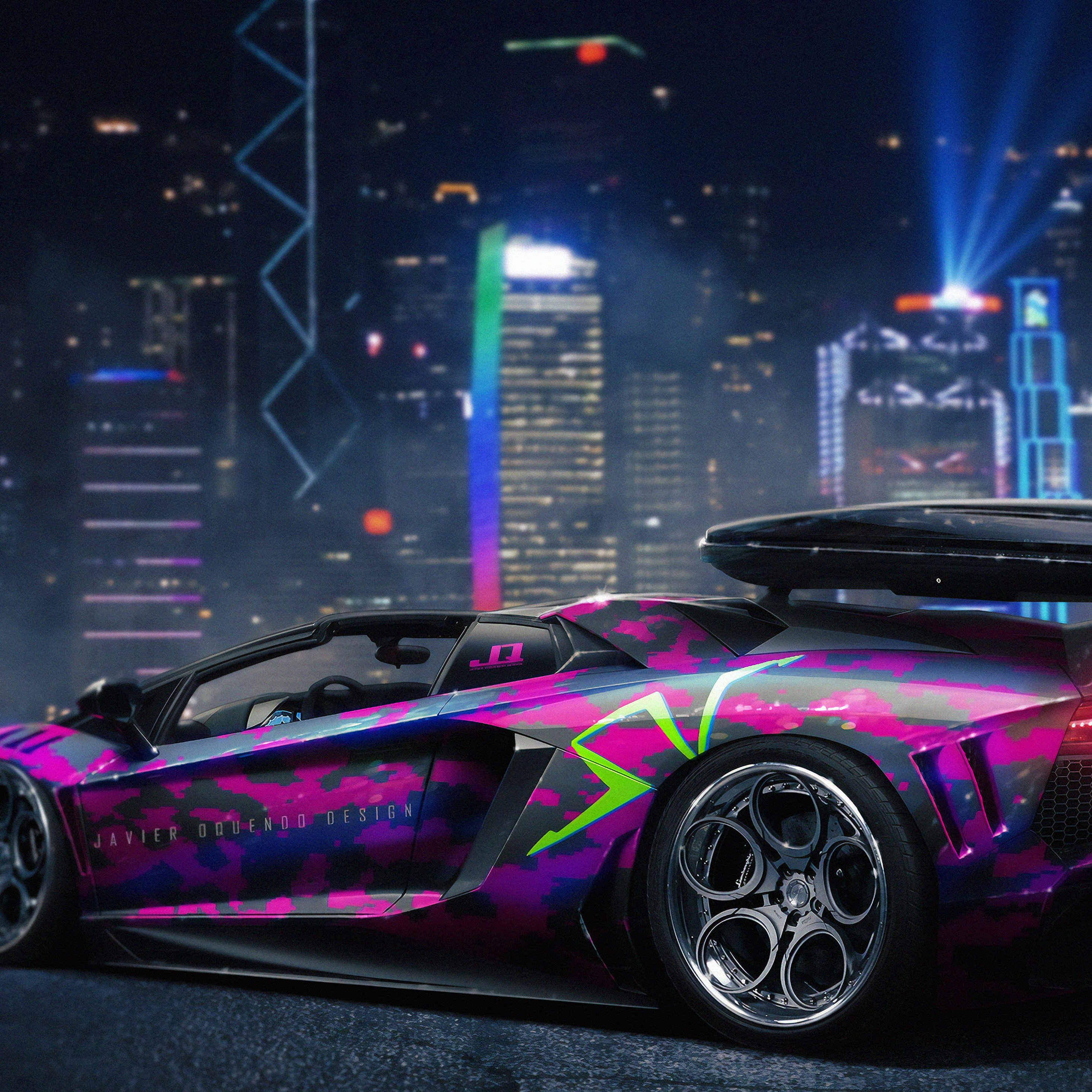 Lamborghini Aventador 4k неон