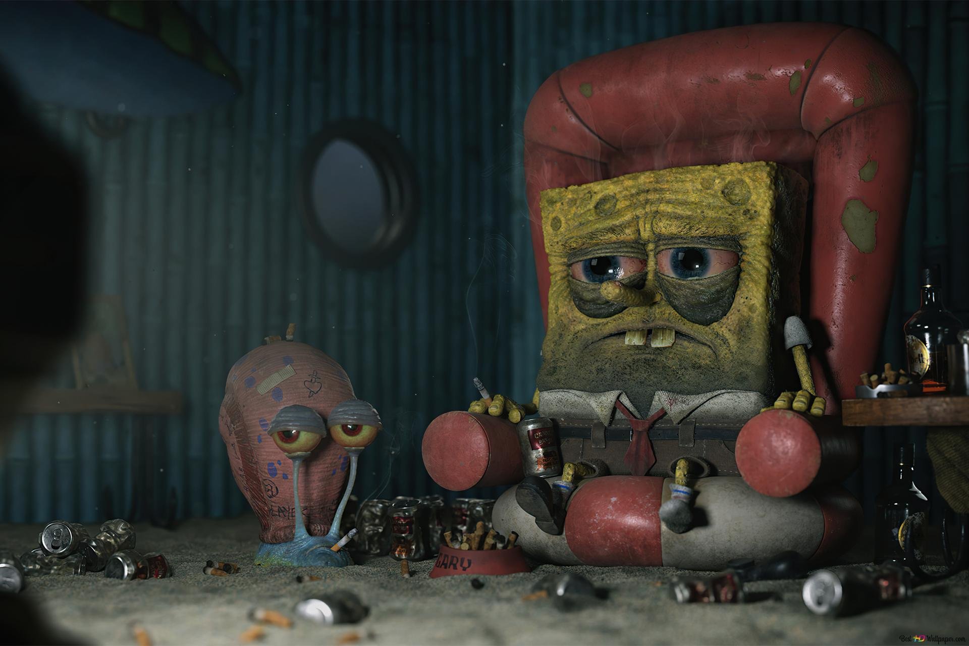 ![Курящий губка Боб 4к]()