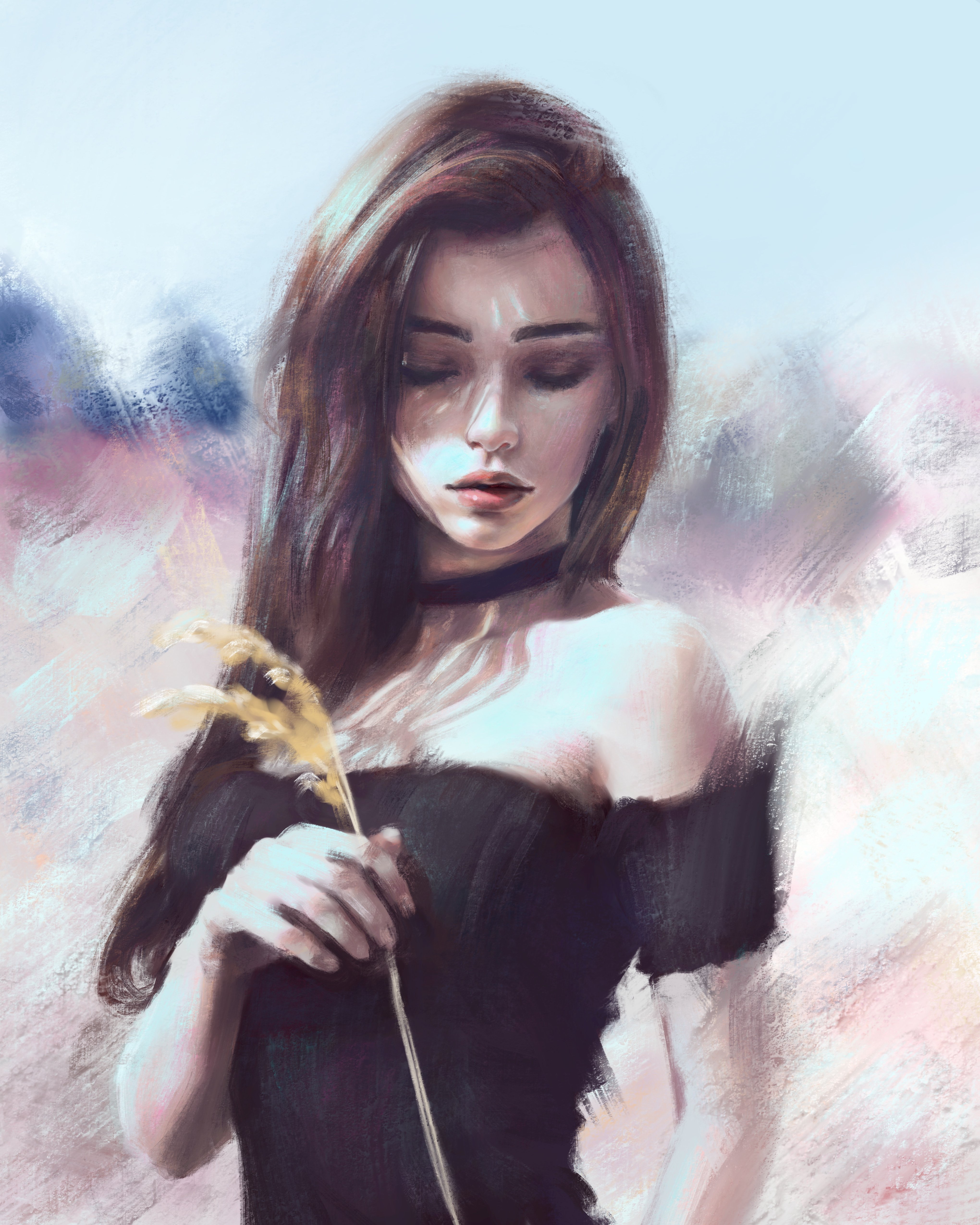 ![Девушка с каштановыми волосами арт]()