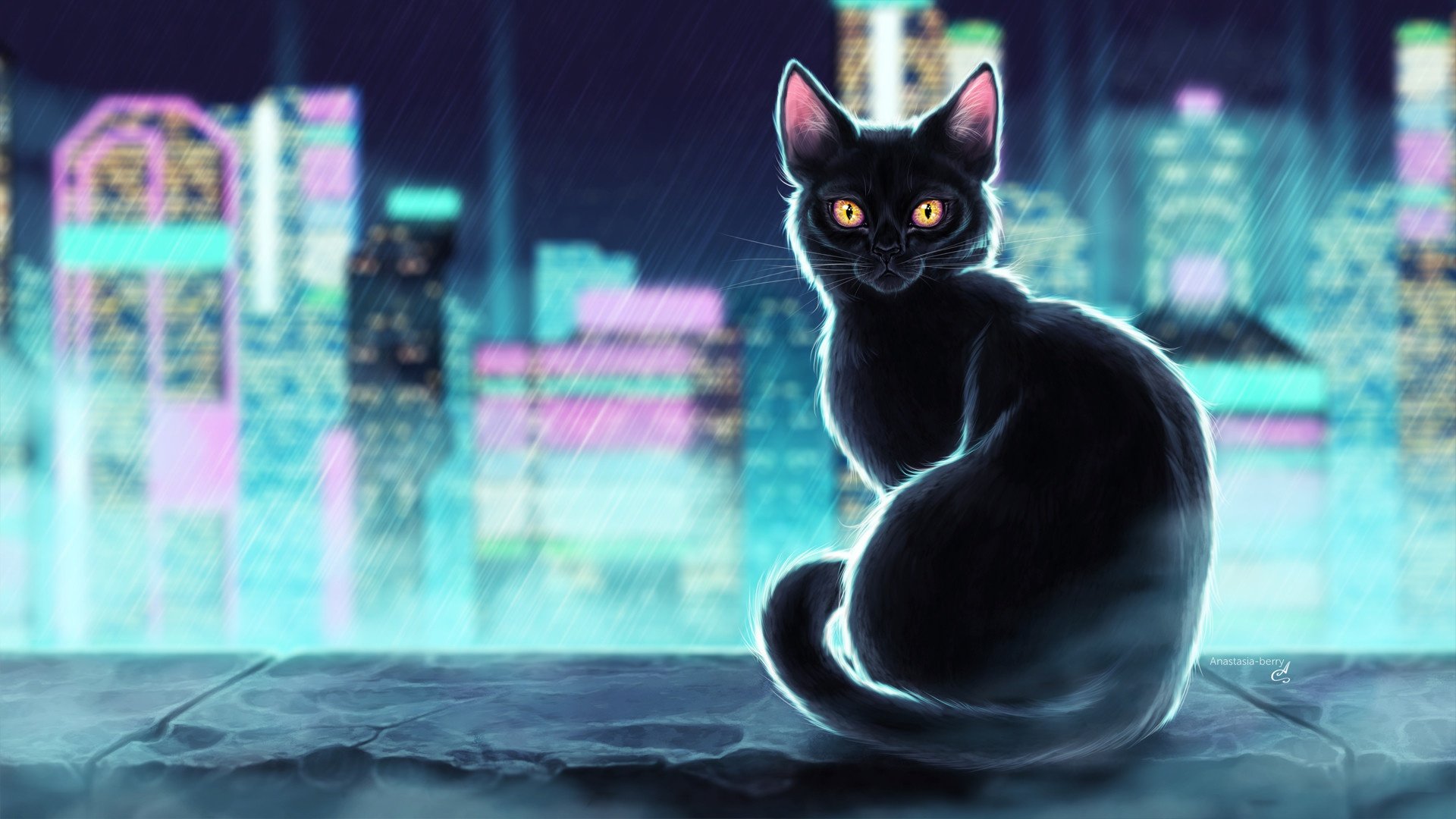 ![Черная кошка арт]()