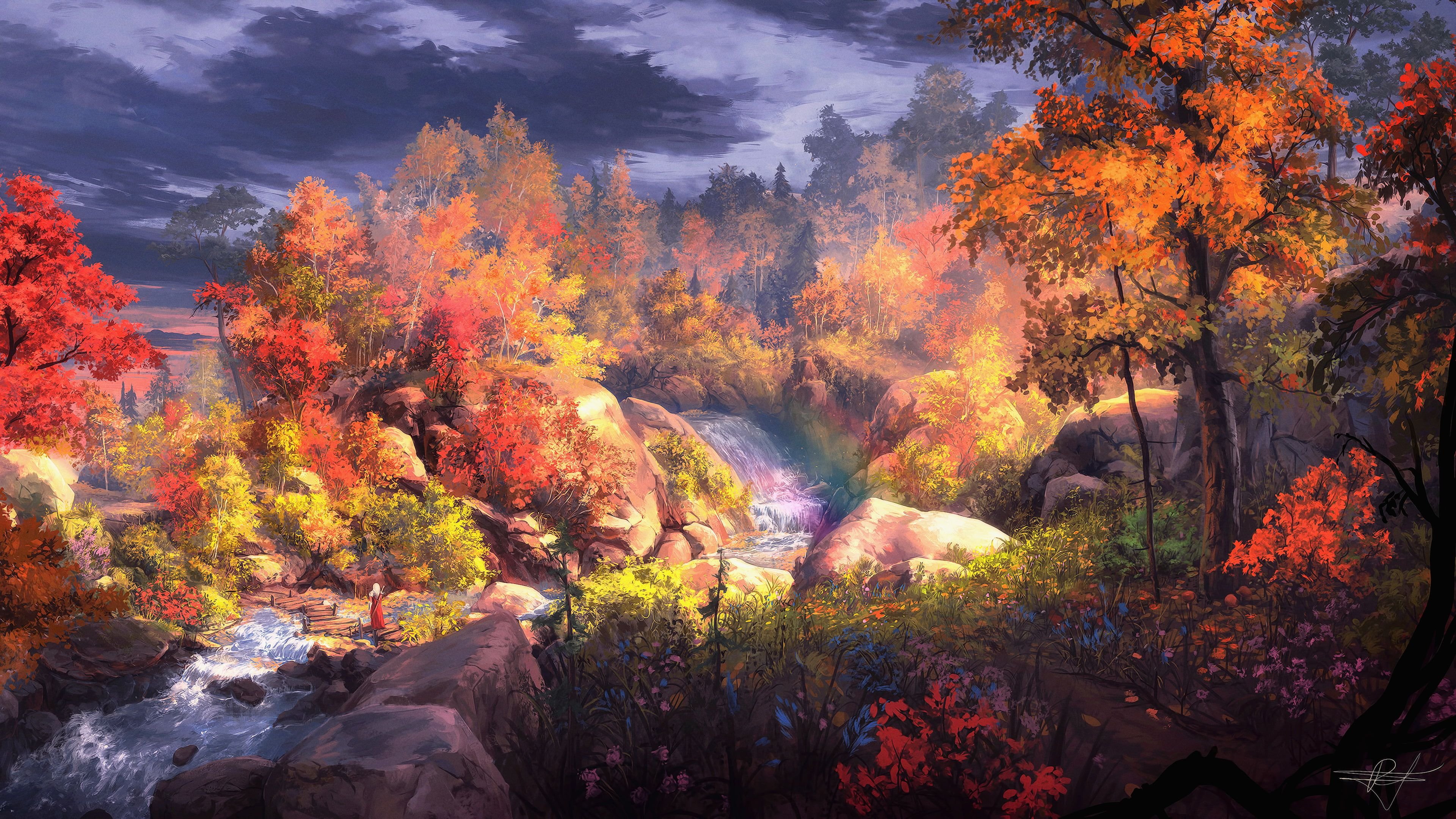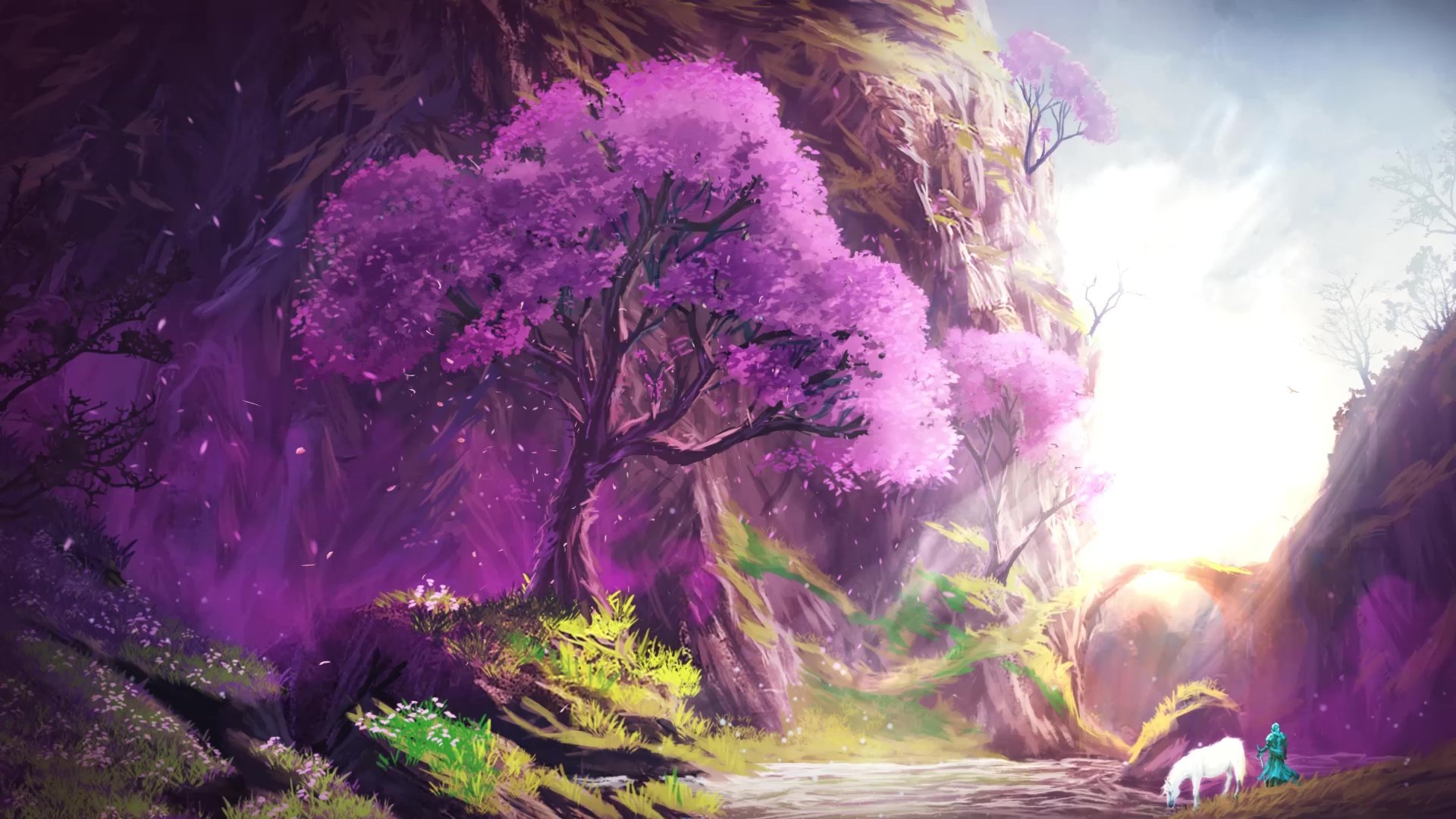 ![Фэнтезийный китайский пейзаж горы дорога]()