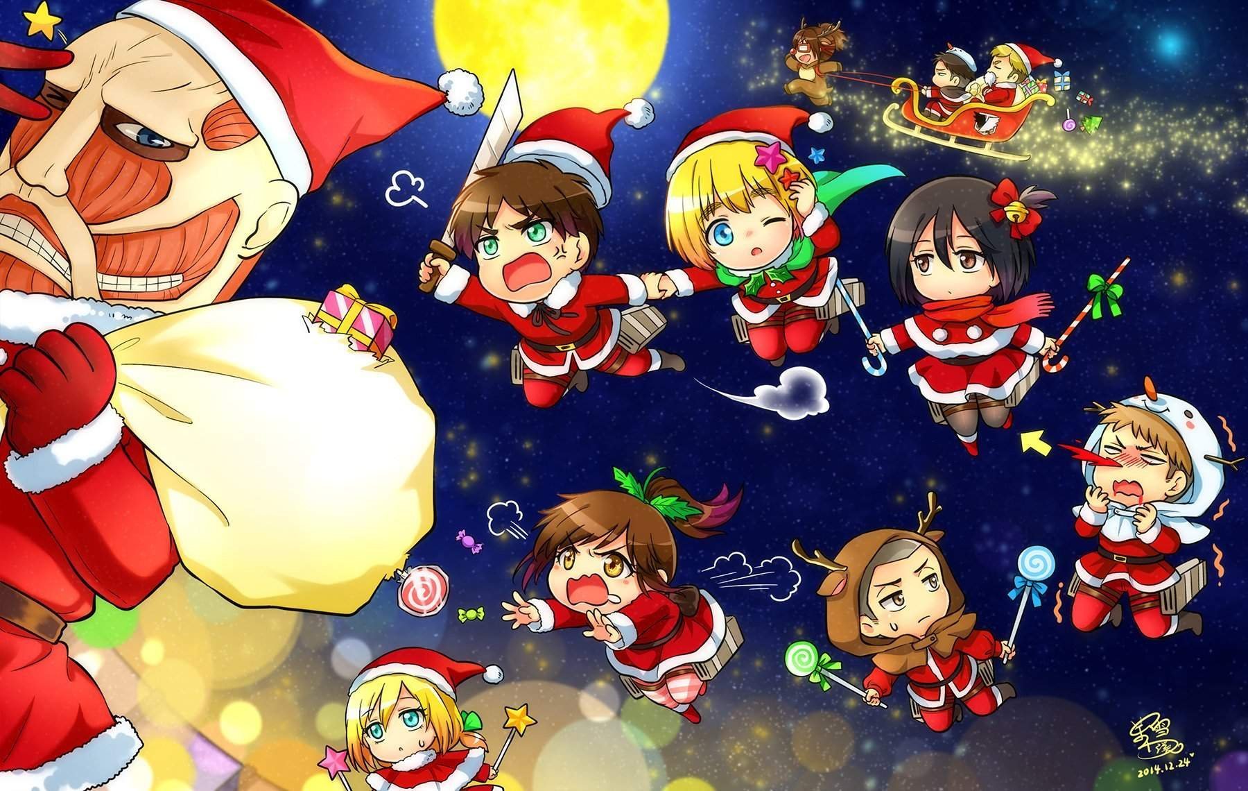 ![Атака титанов новый год Чиби]()