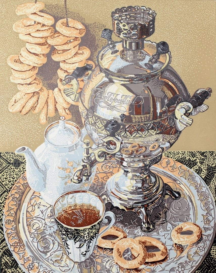 ![Линогравюра самовар]()