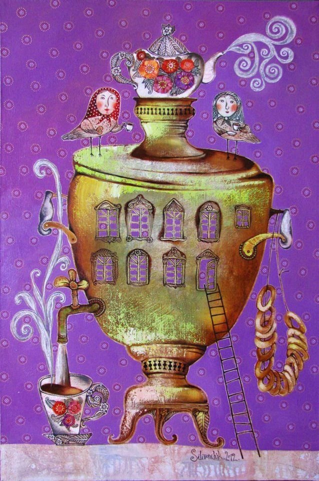 ![Художник Сергей Андрияка картины с самоваром]()