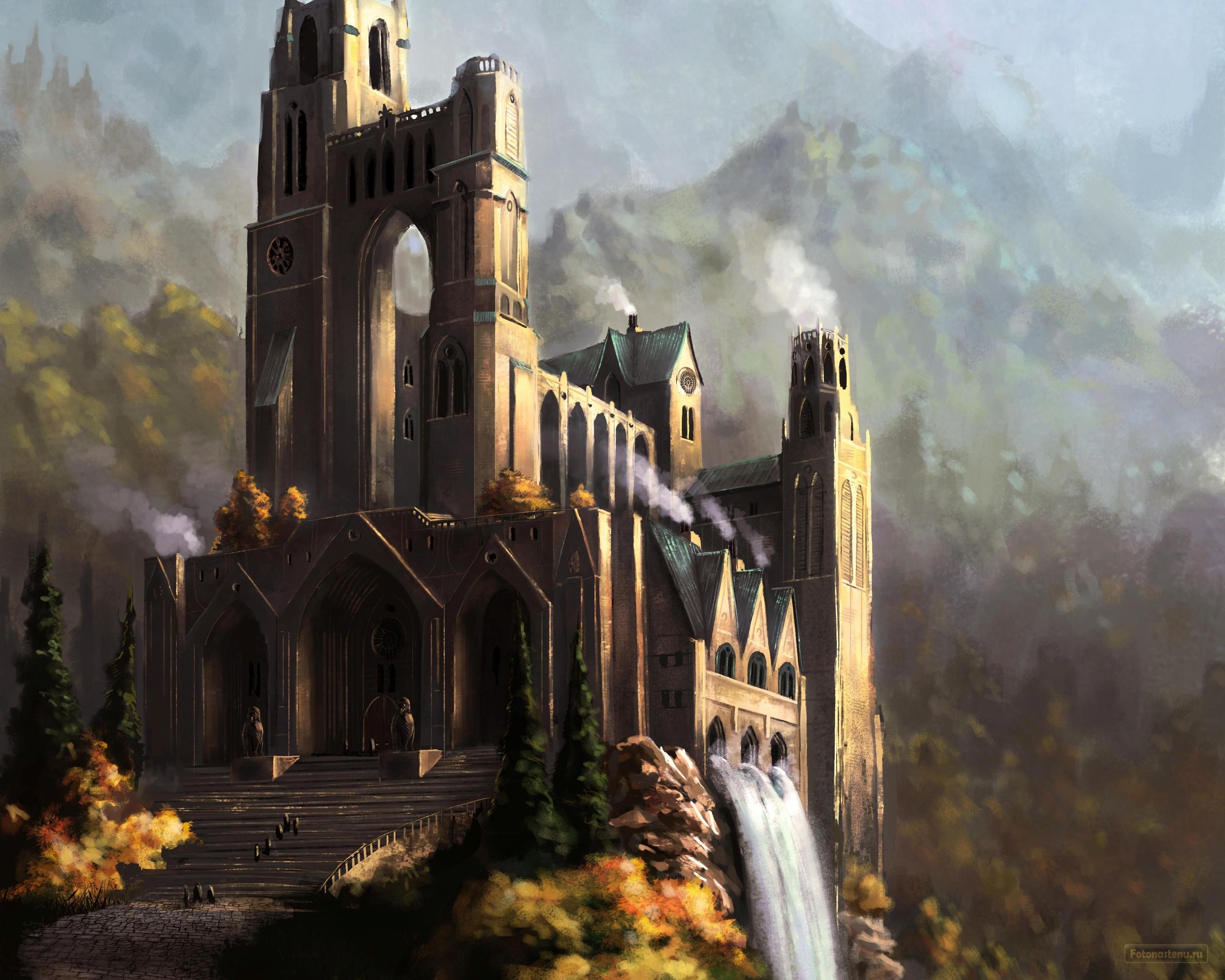 ![Замки фэнтези. Хогвартс сказочный замок.]()