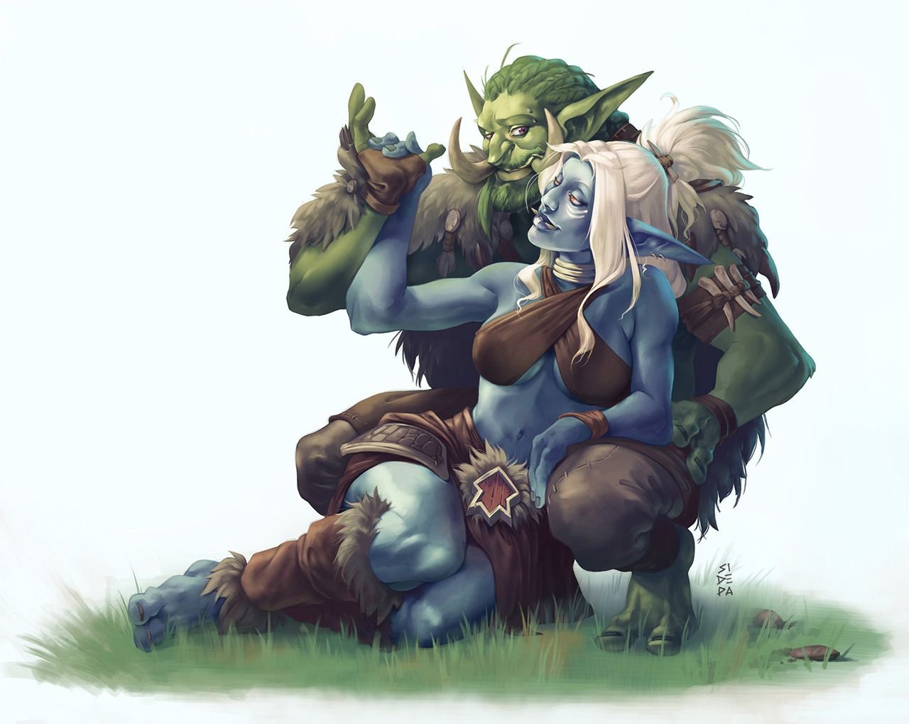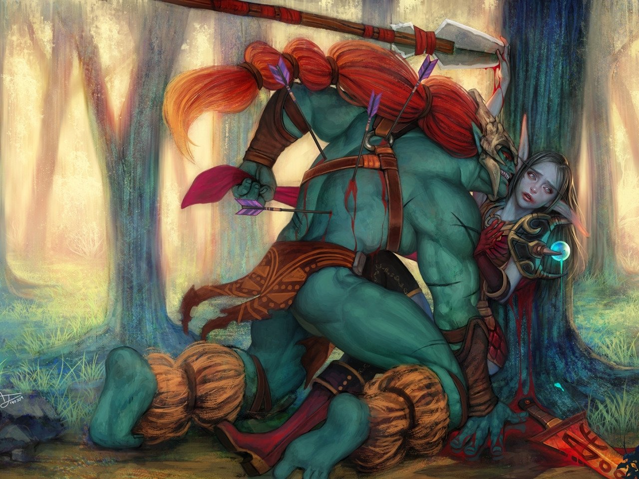 Тролль и эльфийка варкрафт