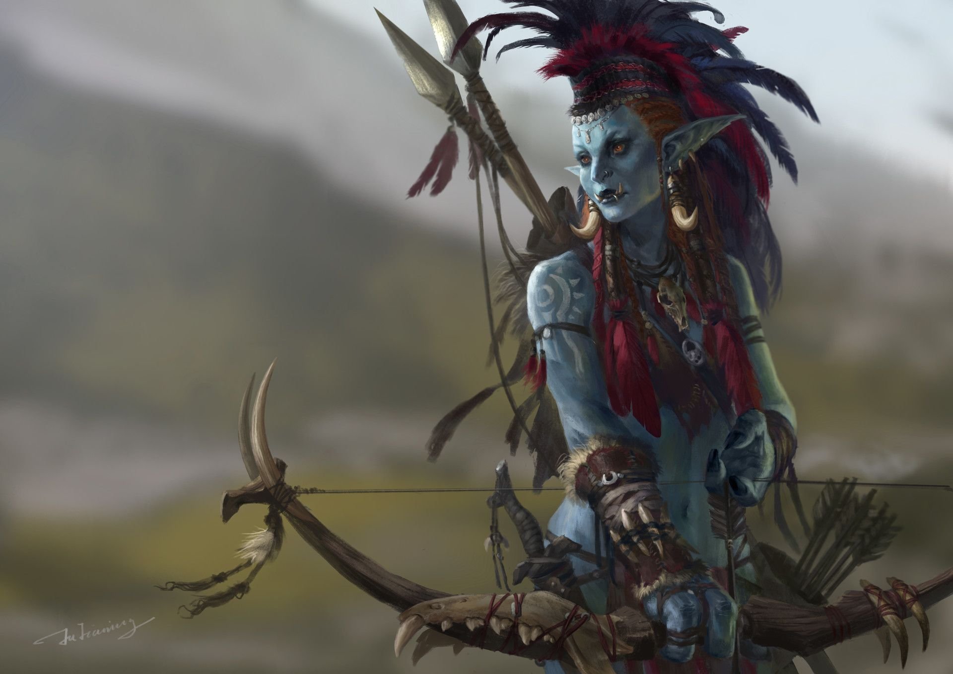![Тролль и эльфийка варкрафт]()