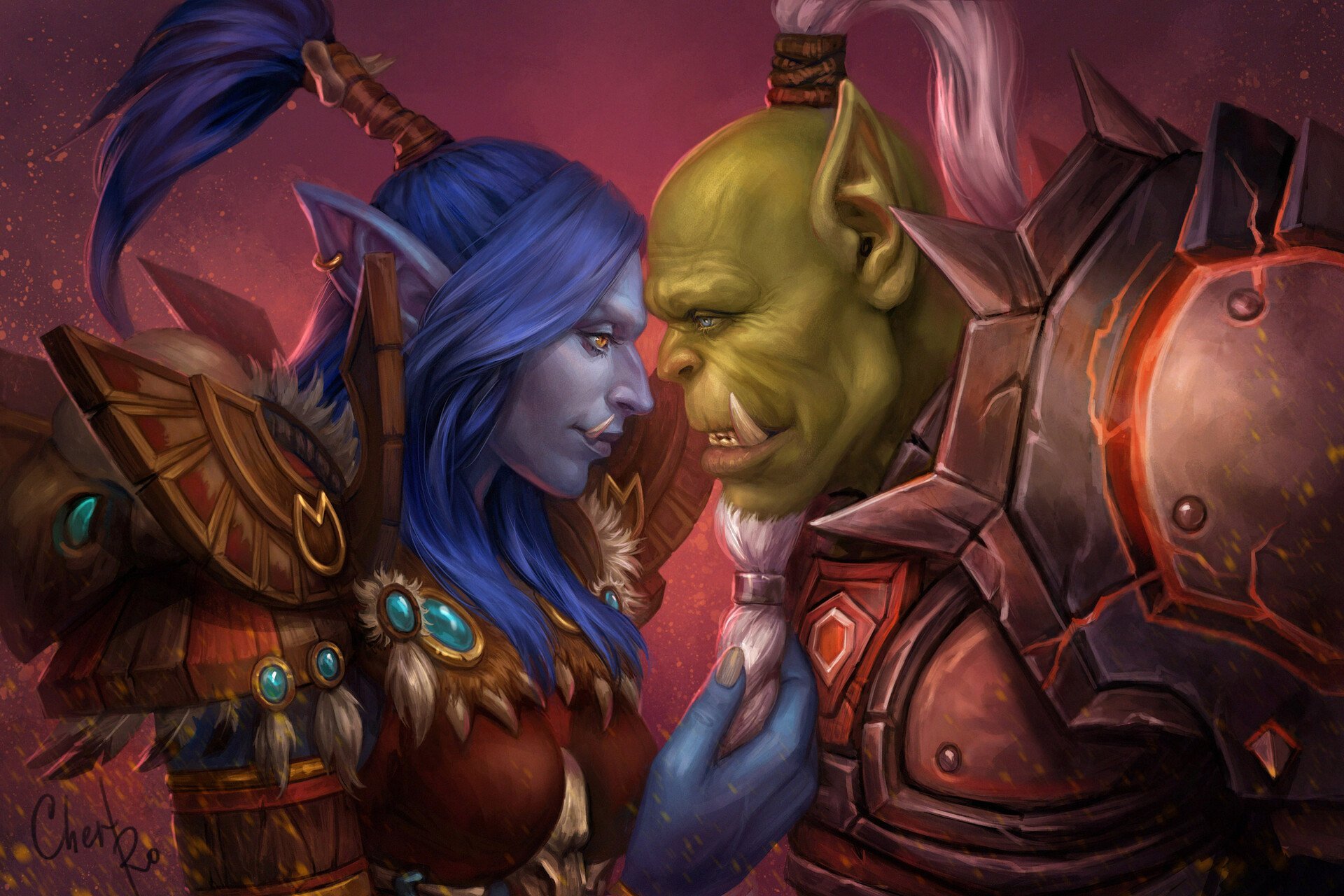 Варкрафт орк и эльфийка
