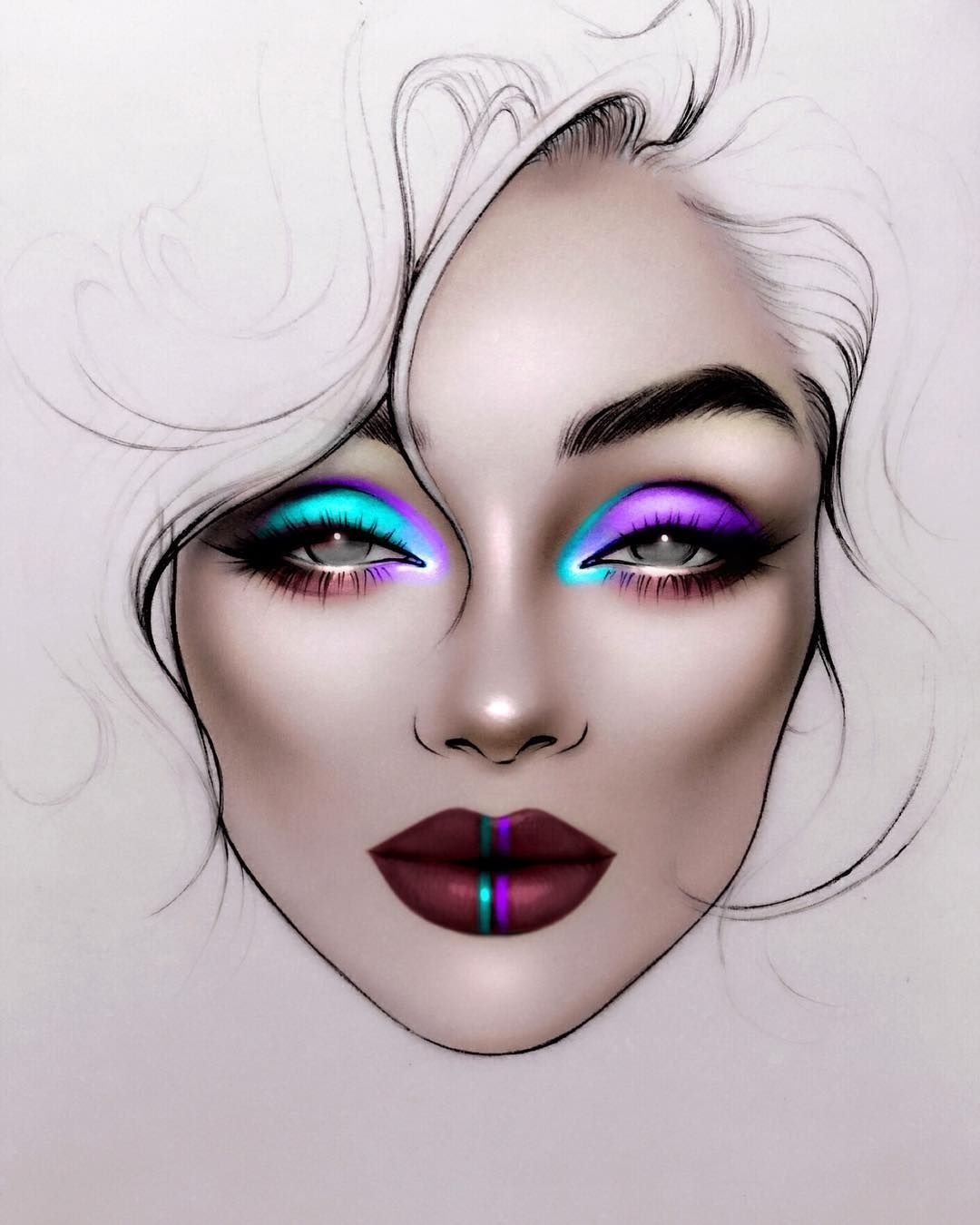 ![Фантазийный макияж эскиз]()