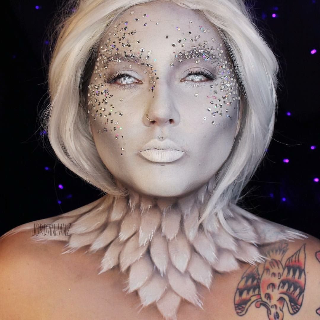 ![Фантазийный макияж с фейс артом]()