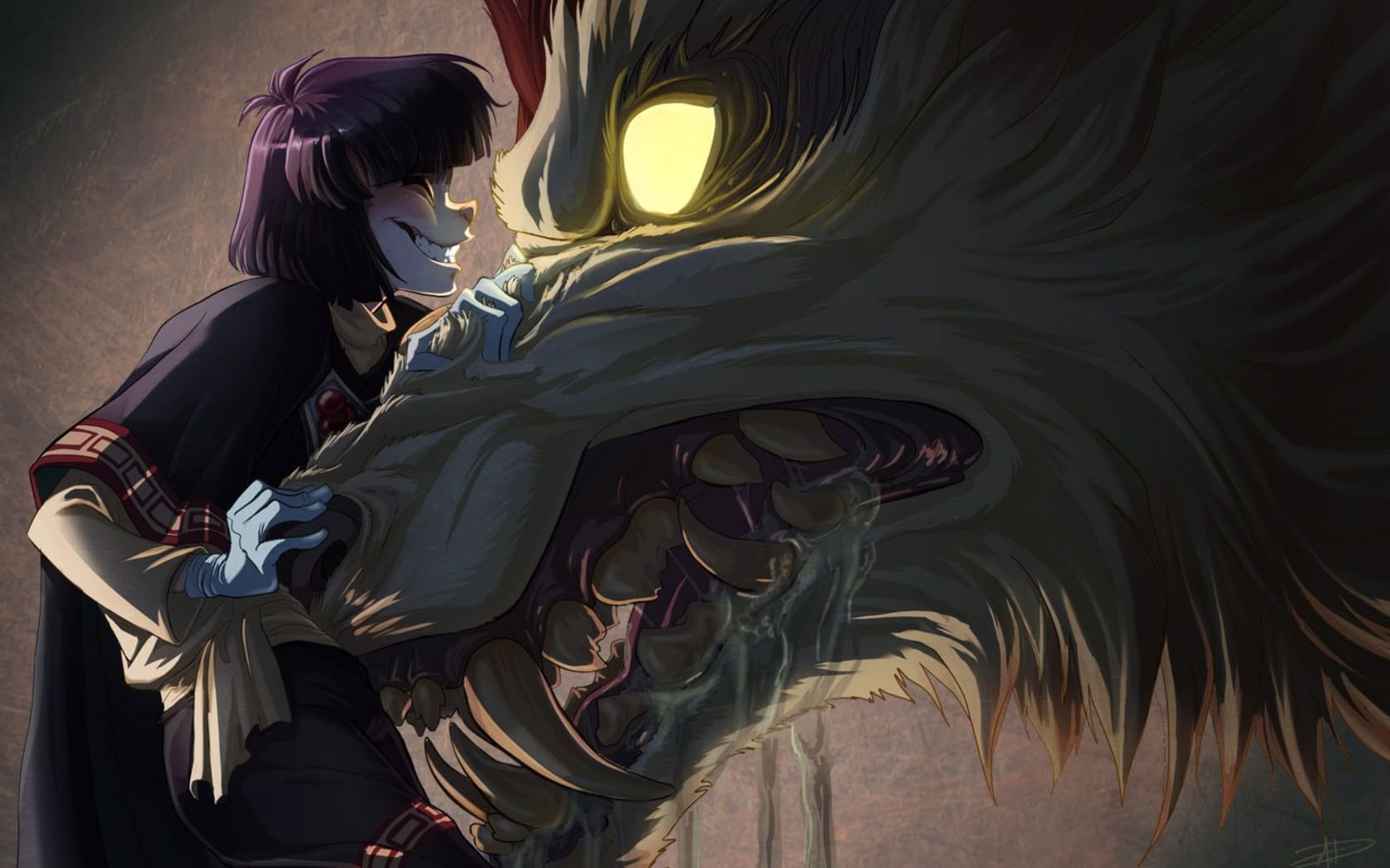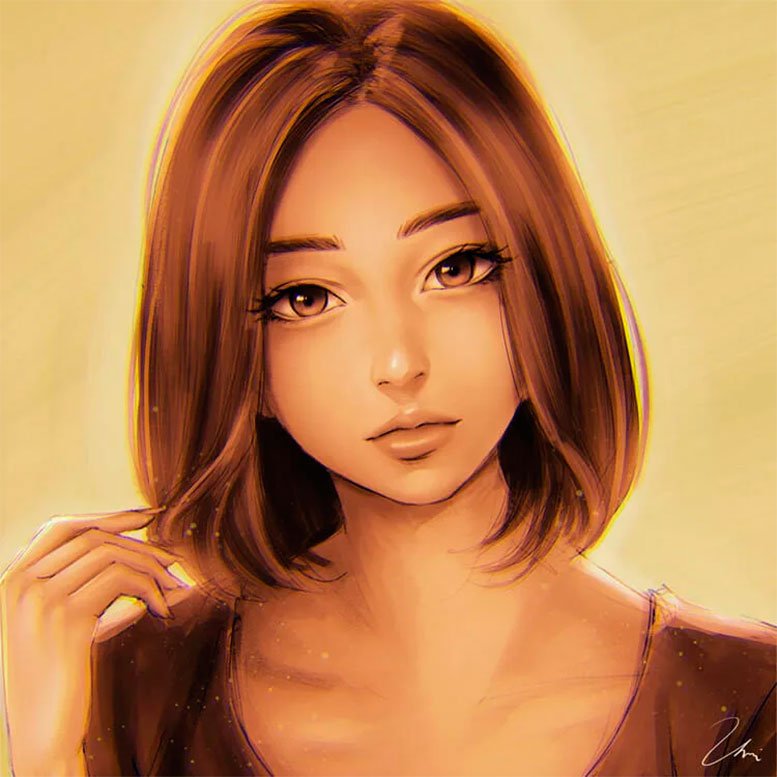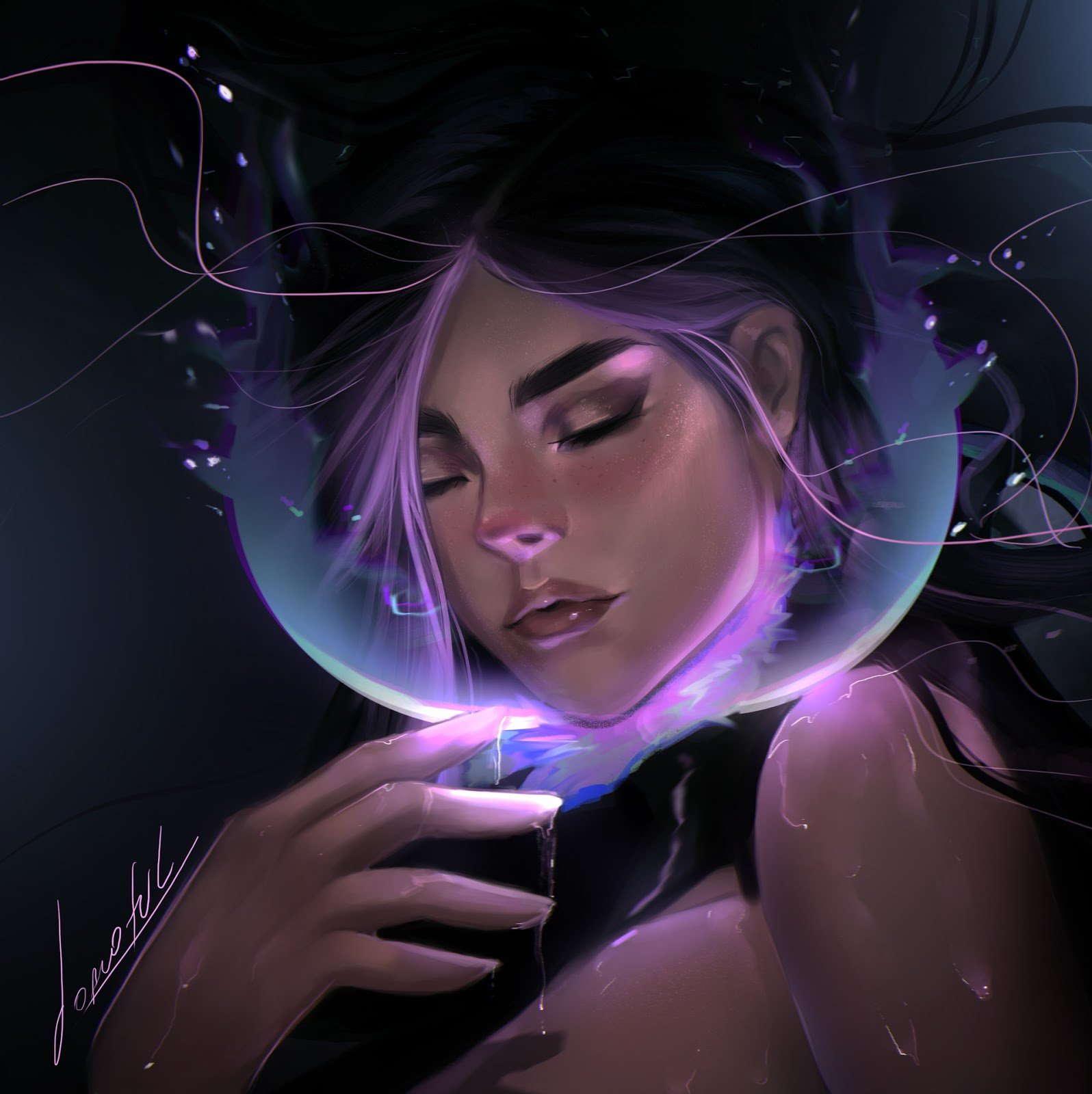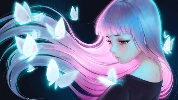 ![Девушка с фиолетовыми глазами и черными волосами]()