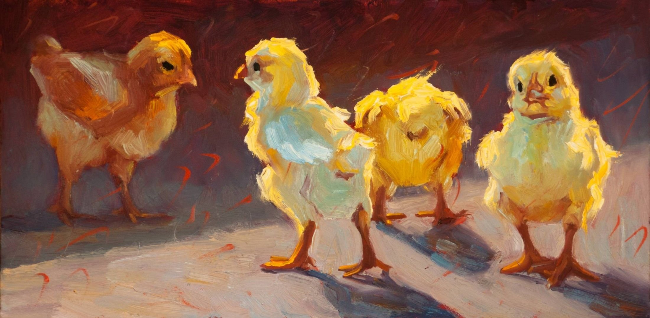 ![Цыпленок в масляной живописи]()