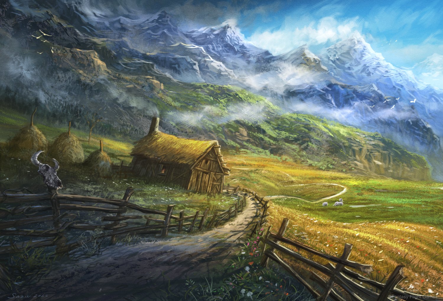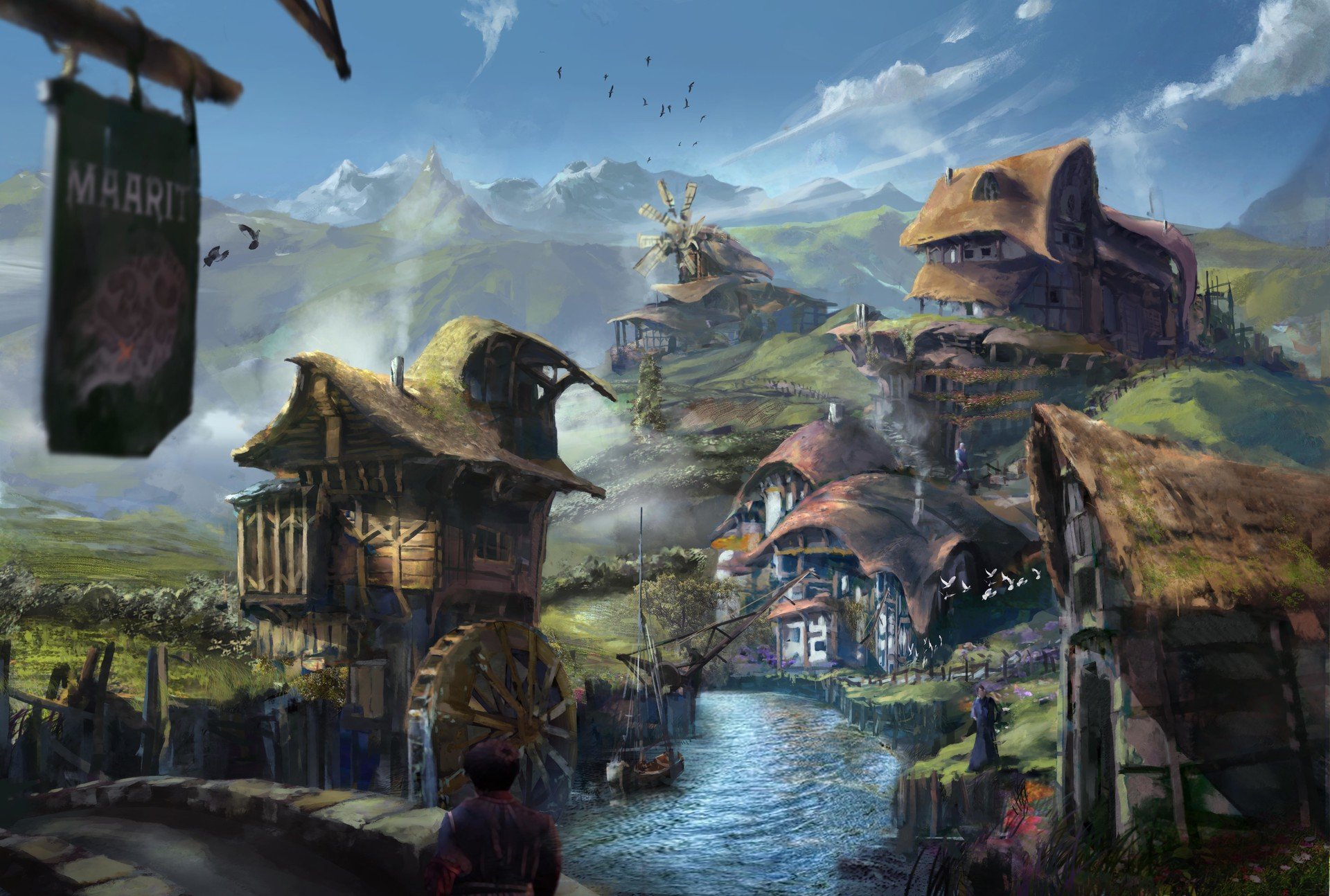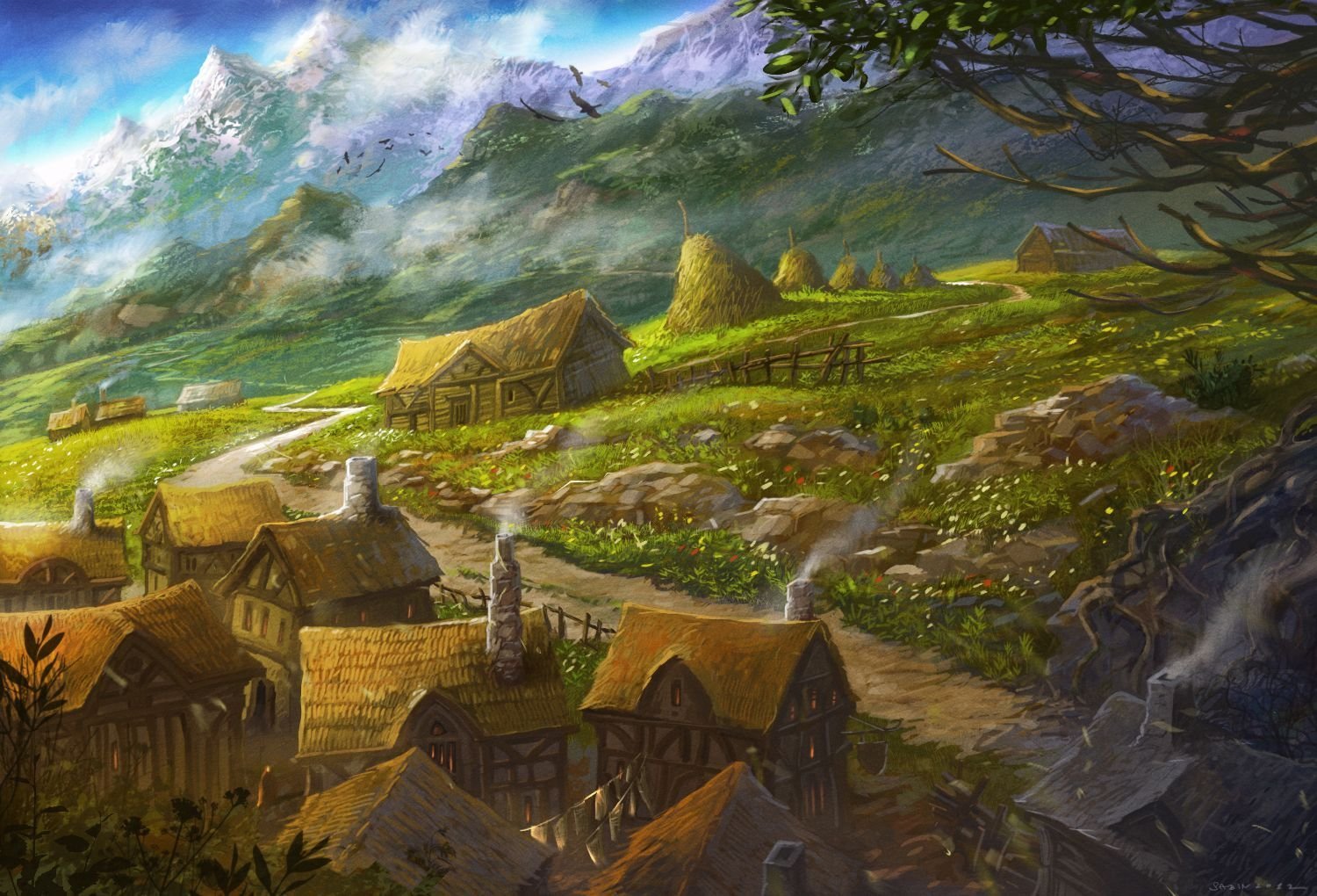 ![Фэнтези пейзажи деревень]()