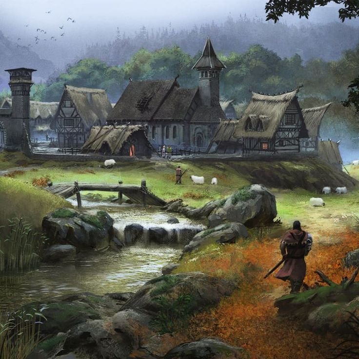 ![Деревня средневековья фэнтези арт]()