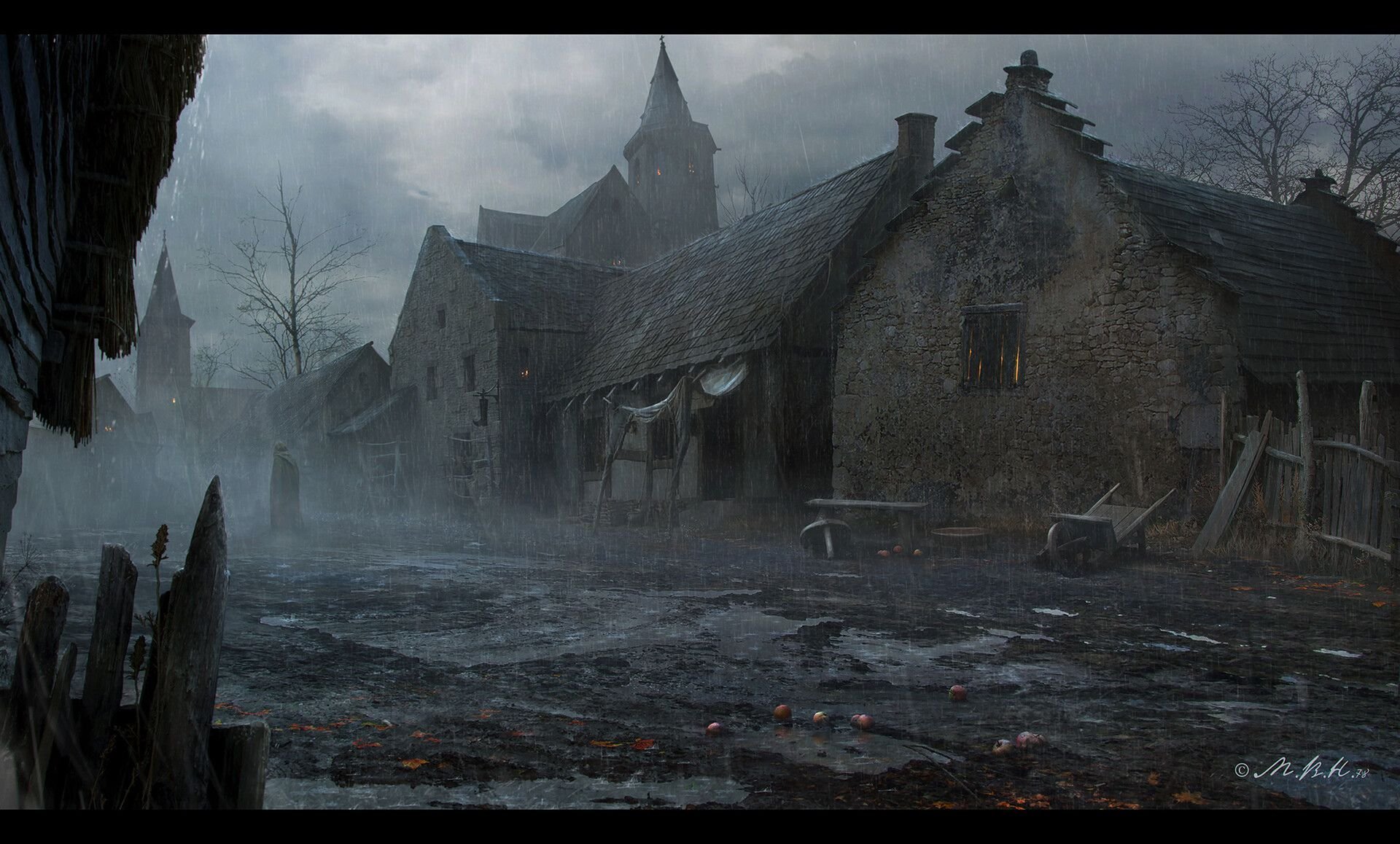 ![Ведьмак деревня арт]()
