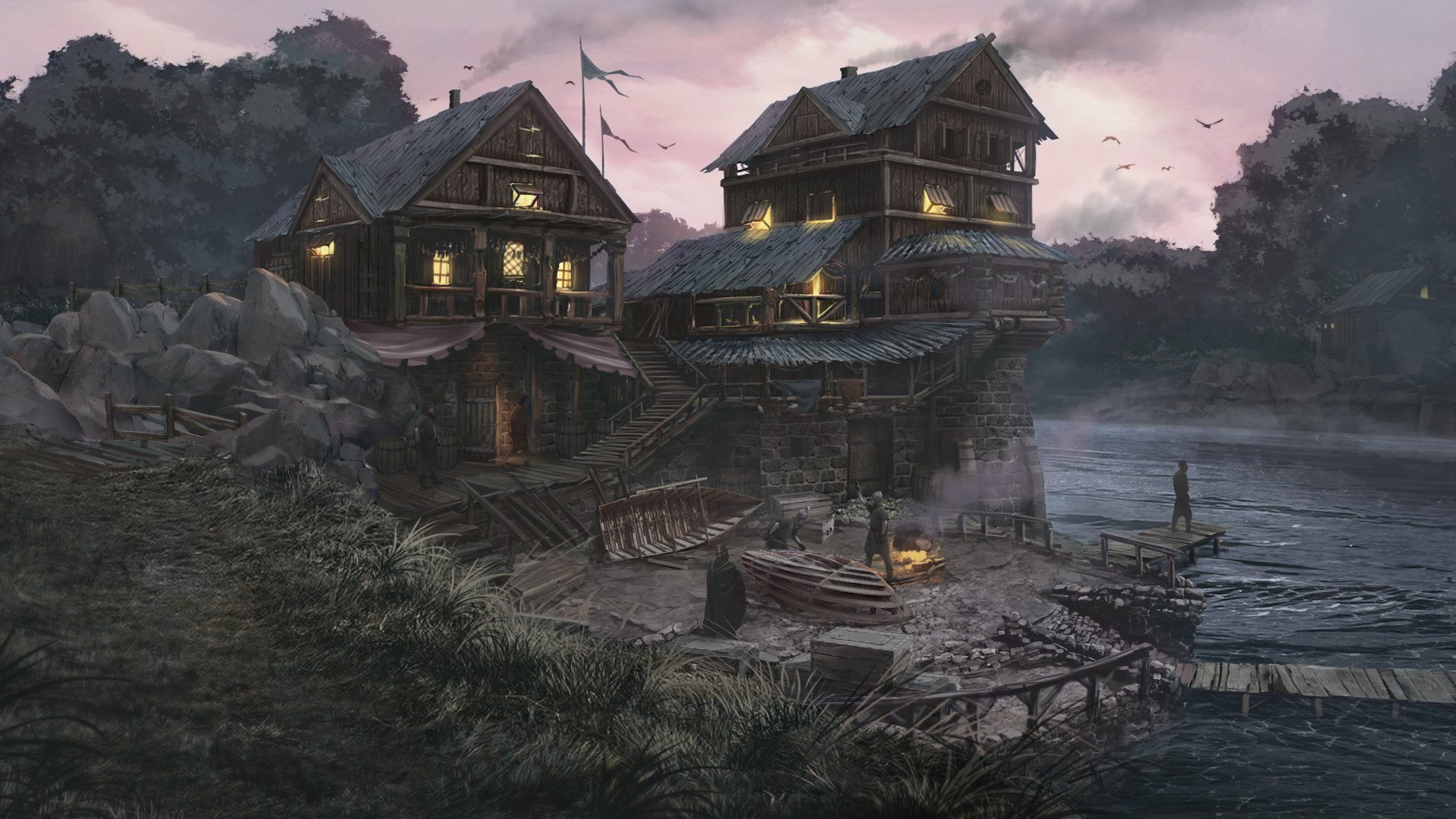 ![Концепт арт фэнтези деревня]()