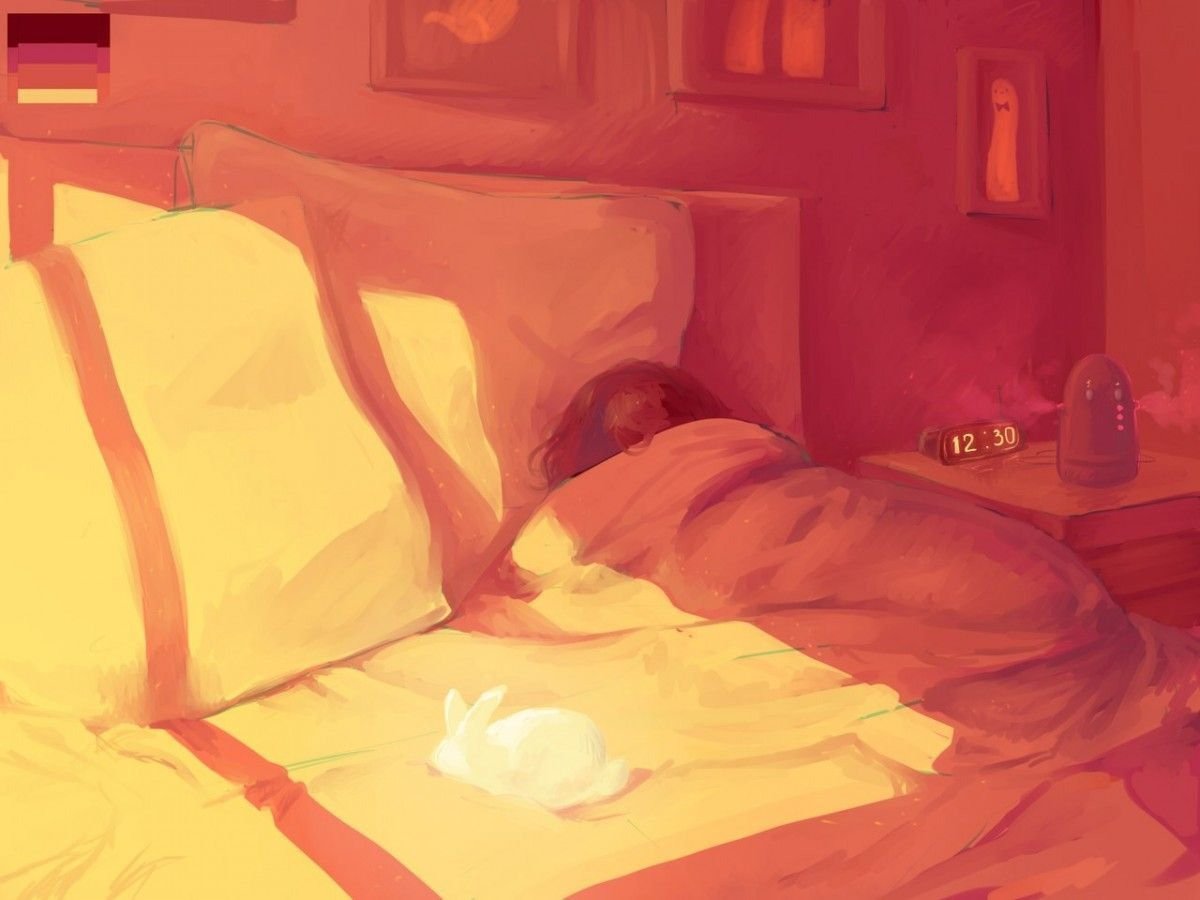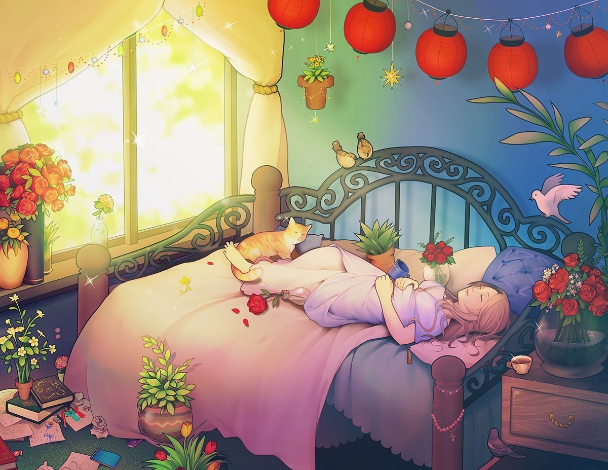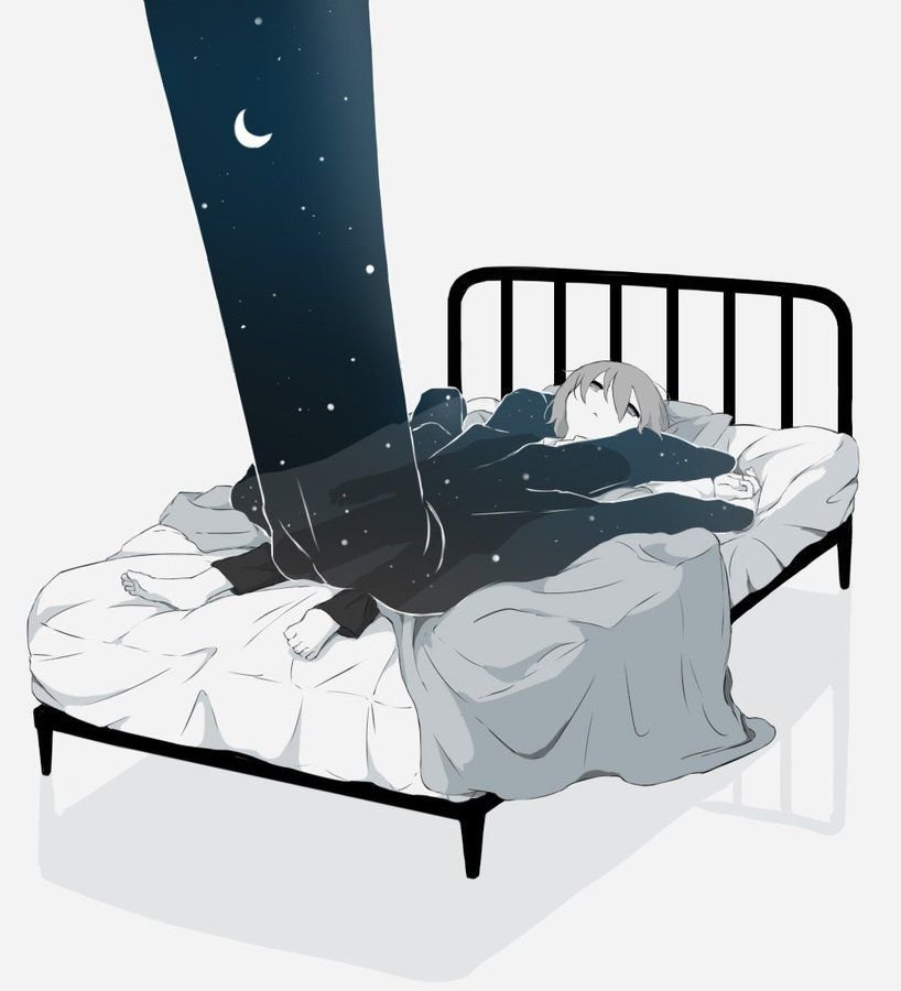 Аниме девушка спит на кровати