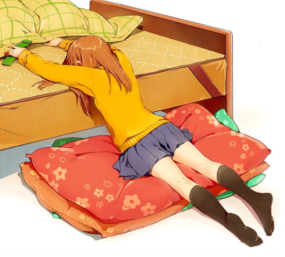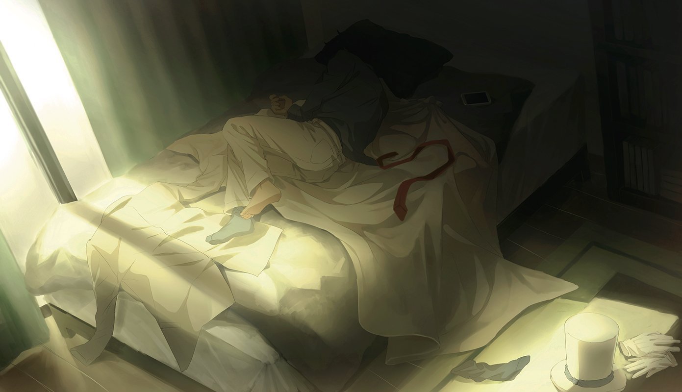 ![Аниме девушка спит на кровати]()