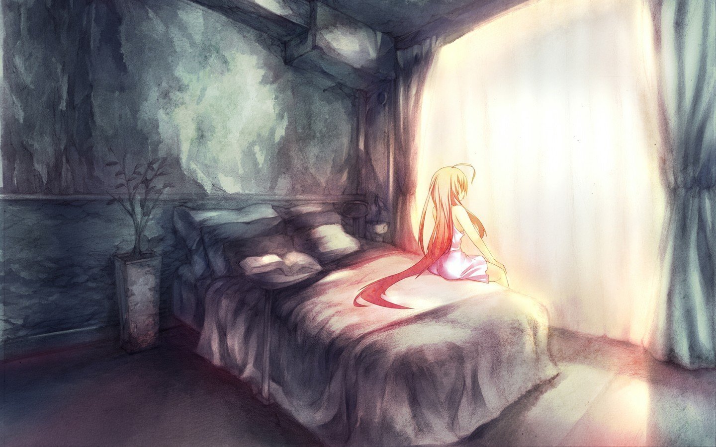 ![Комната с кроватью аниме]()