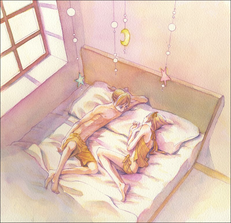 ![Аниме девушки в постели]()
