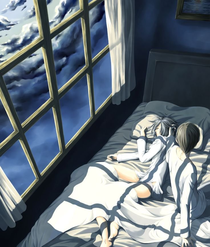 Аниме кровать ночью