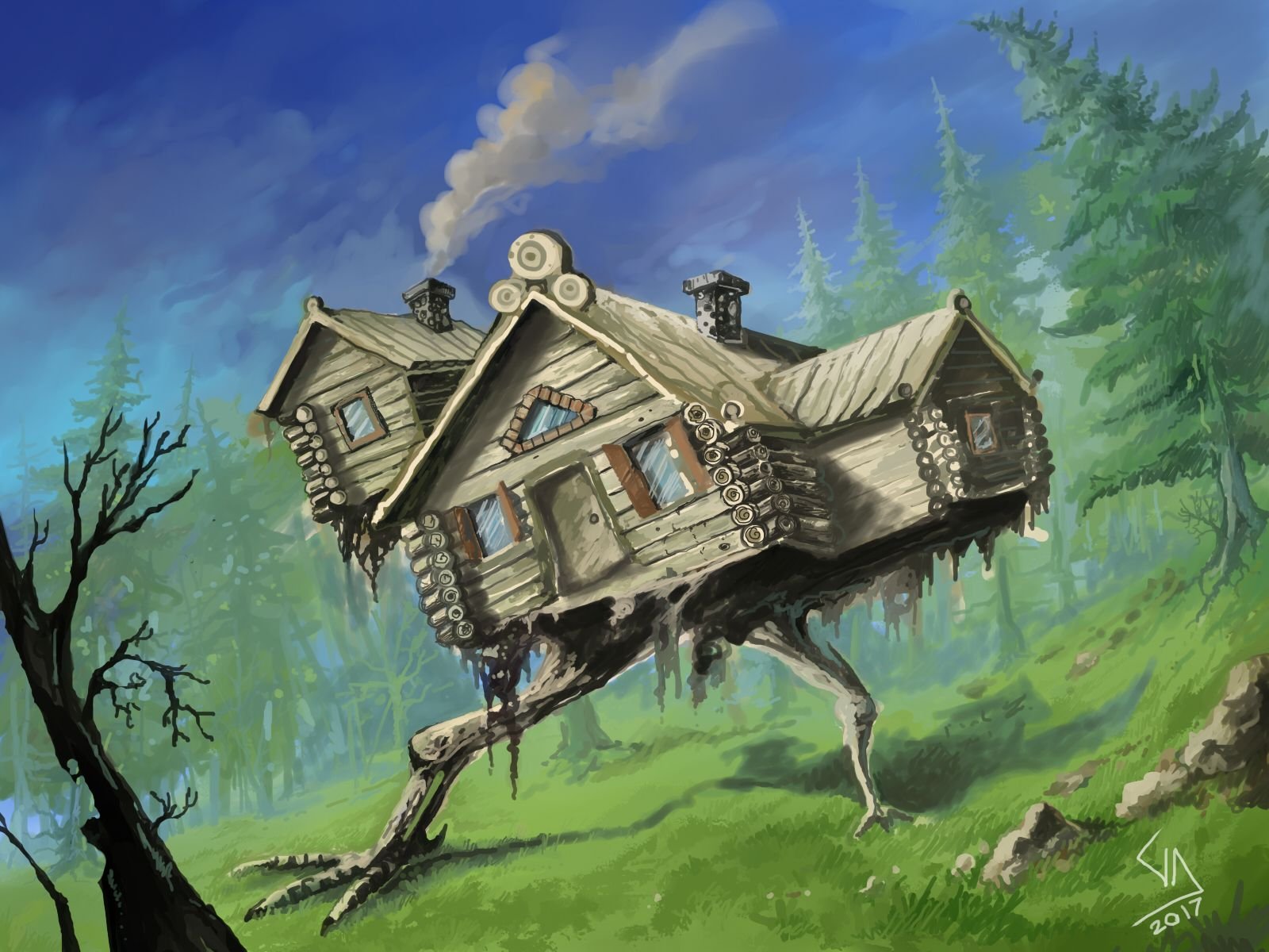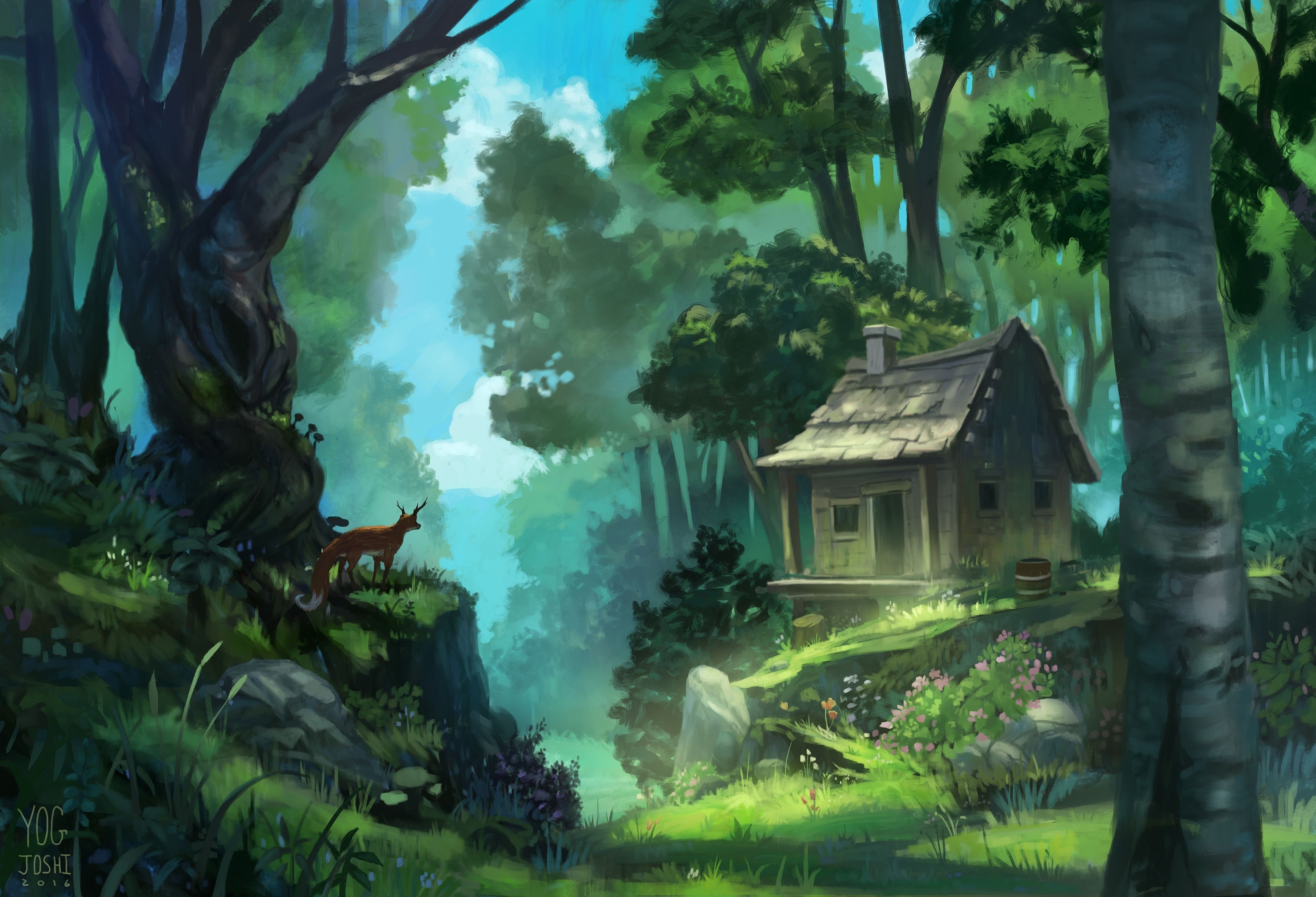 ![Домик в лесу арт]()