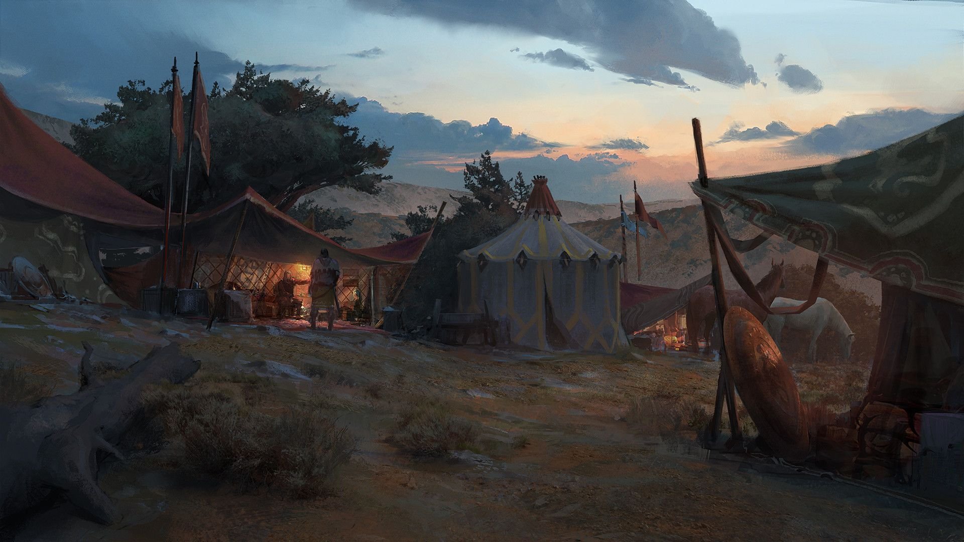 ![Лагерь кочевников фэнтези арт]()