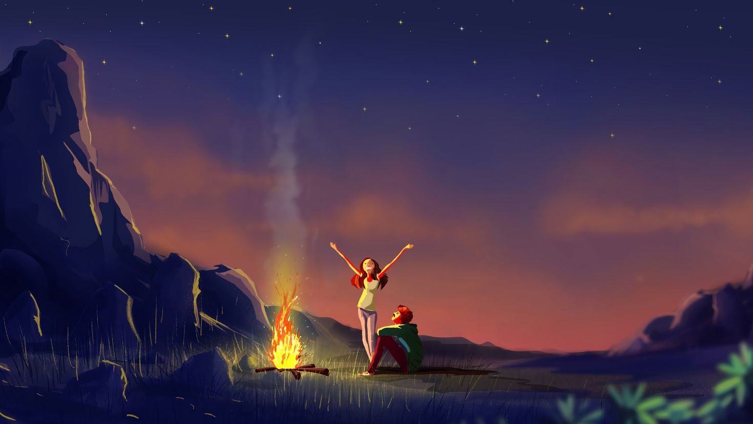 Костер в лесу фэнтези