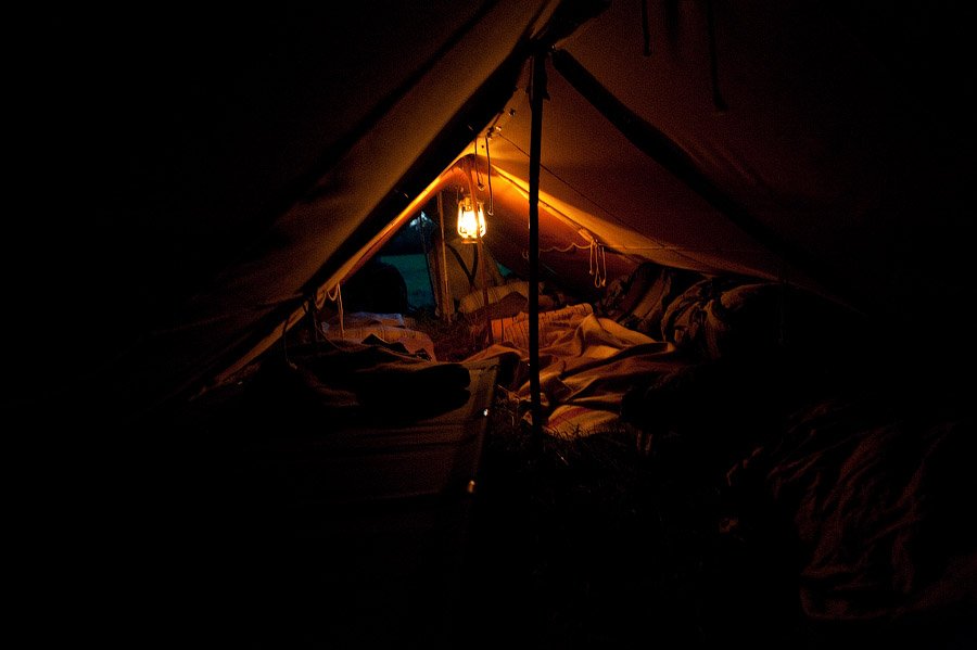 Палатка изнутри ночью