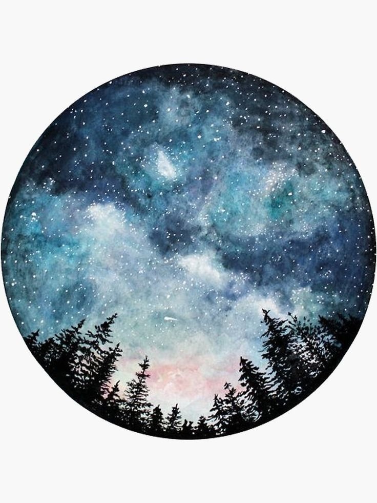 ![Акварельный пейзаж в круге]()