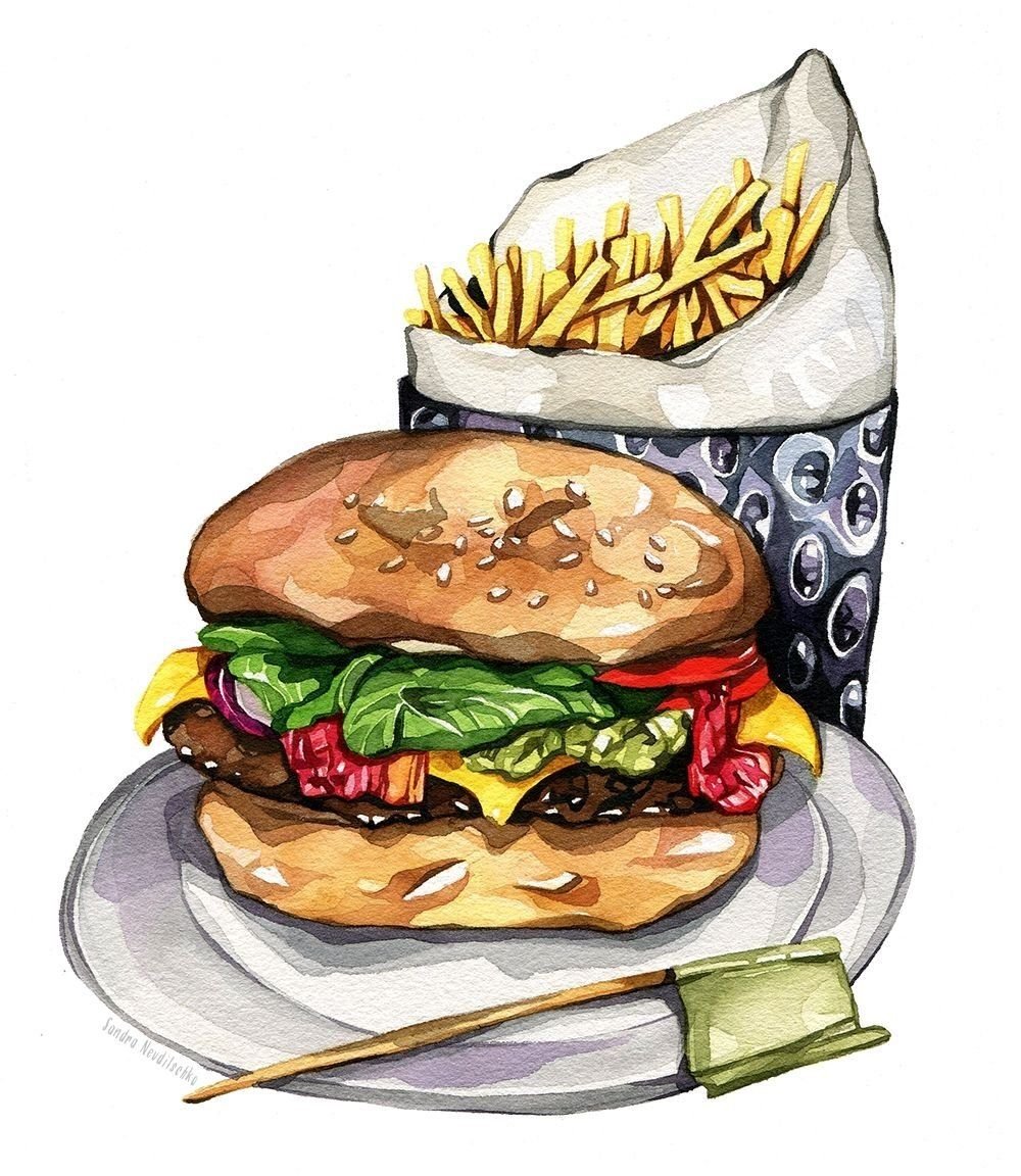 ![Гамбургер акварелью]()