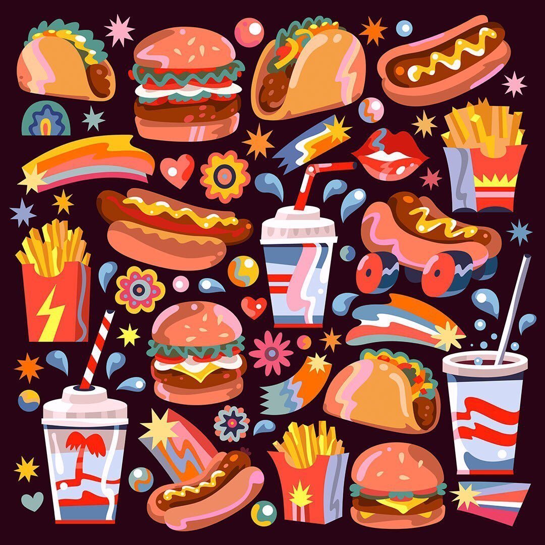 ![Поп арт фаст фуд]()