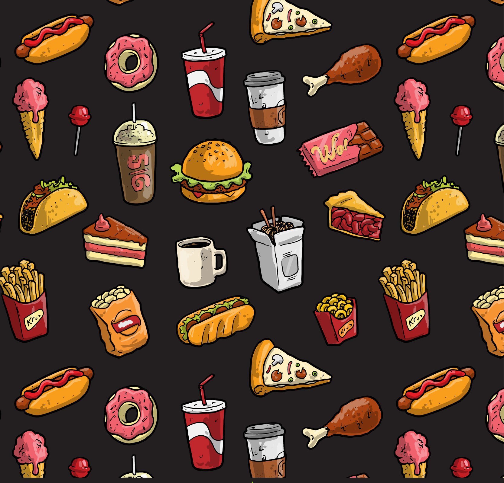 ![Фастфуд в мультяшном стиле]()