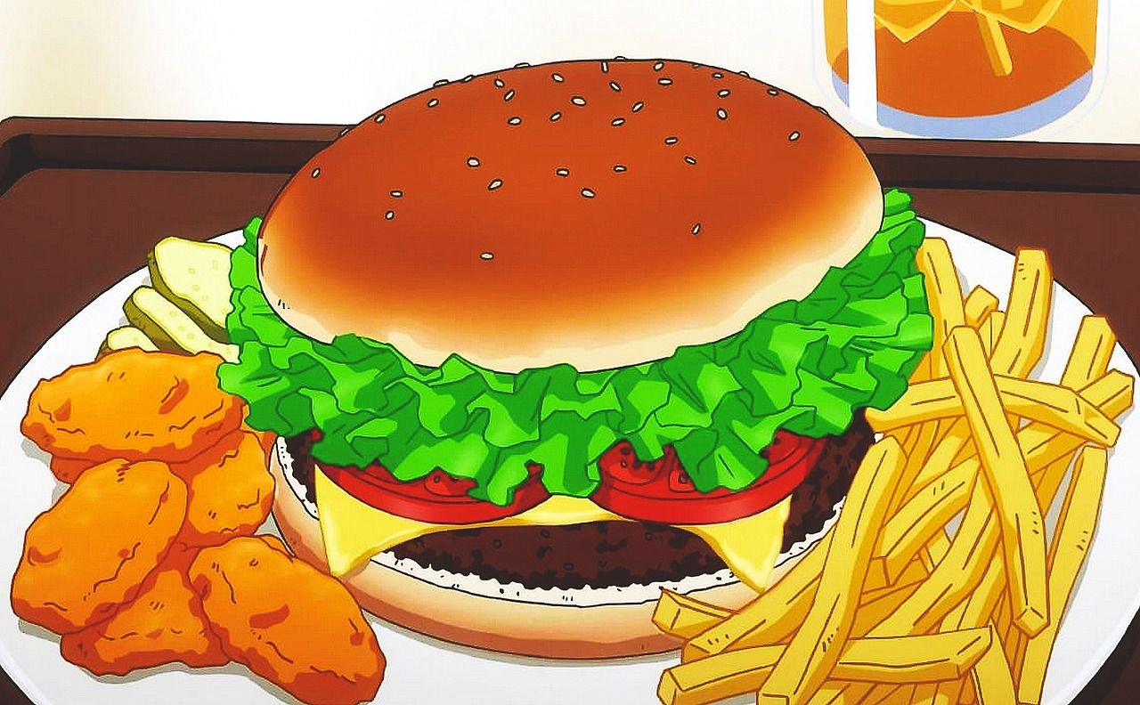 ![Гамбургер блюдо в аниме]()