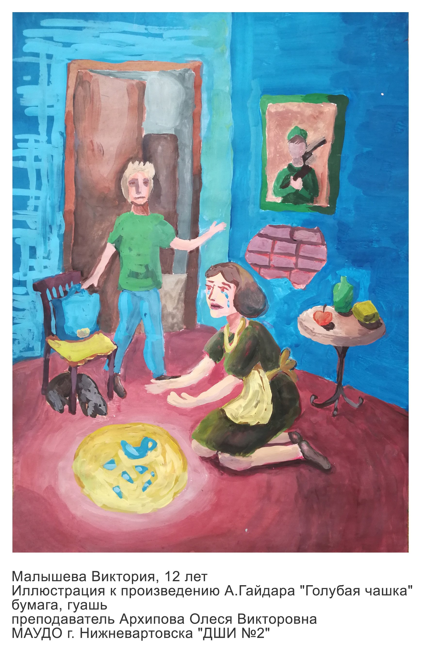 ![Рисунок к рассказу голубая чашка Гайдара]()