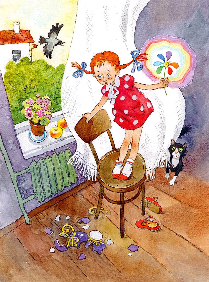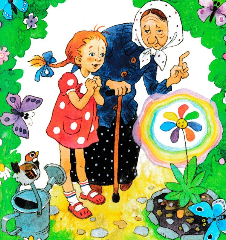 ![Иллюстрации к сказке Катаева Цветик семицветик]()