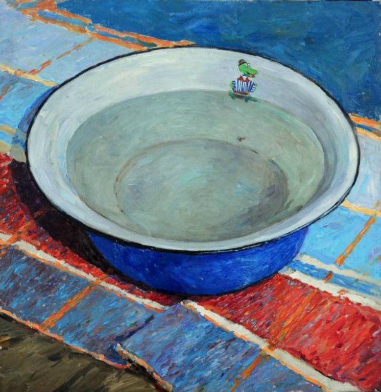 Мытье в тазике арт