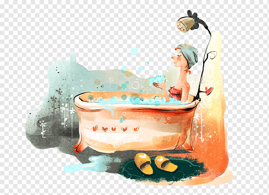 ![Нарисованная девушка в ванной]()