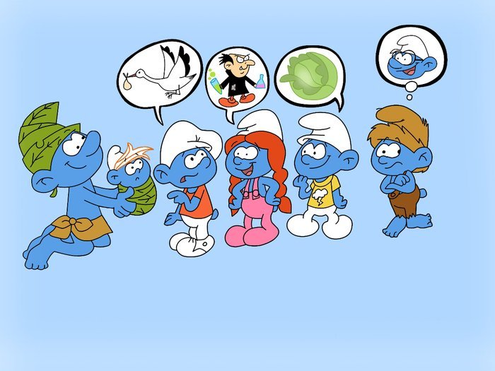 ![Папа Смурф со смурфетой]()