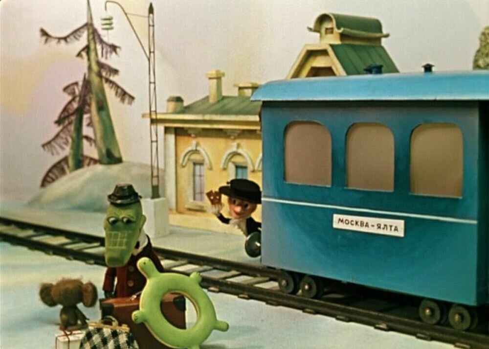 ![Чебурашка и крокодил Гена на поезде]()