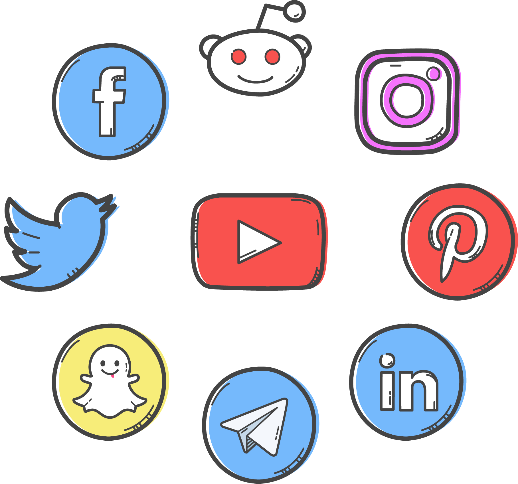 ![Иконки социальных сетей Рисованные]()