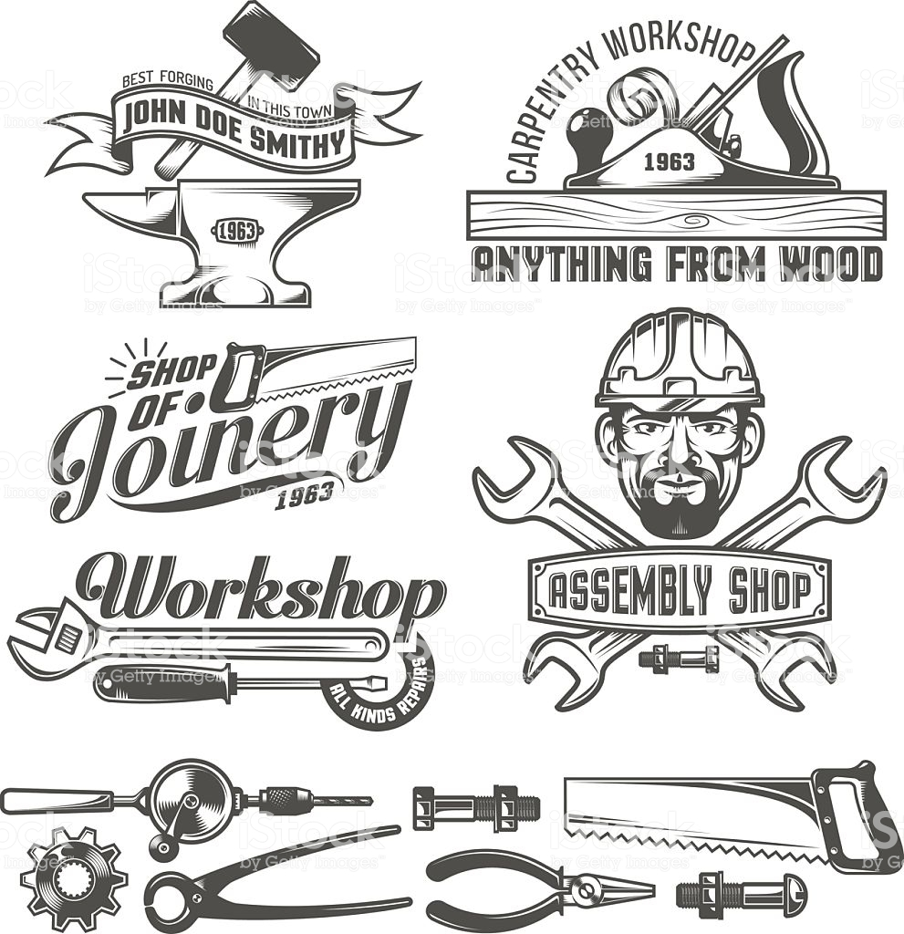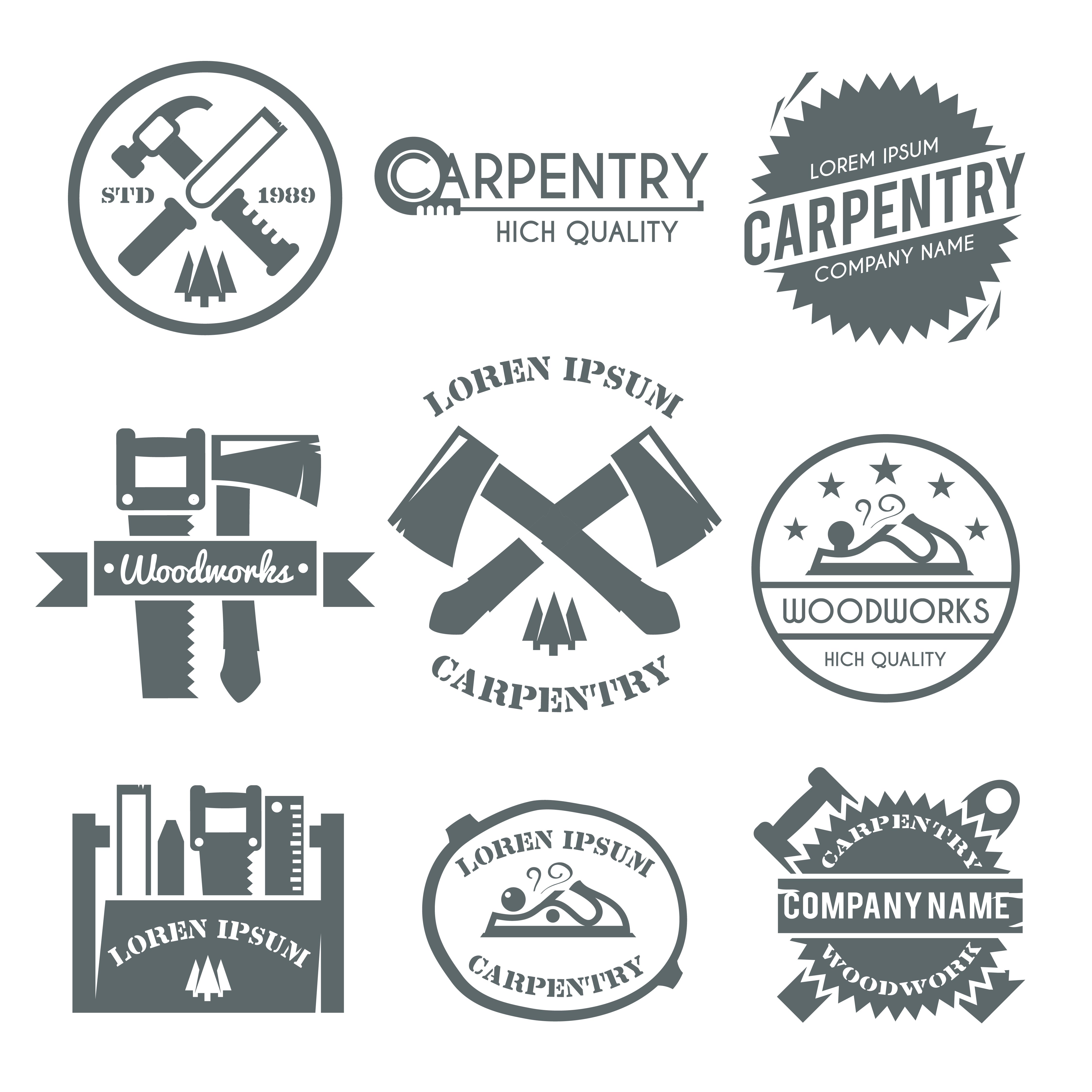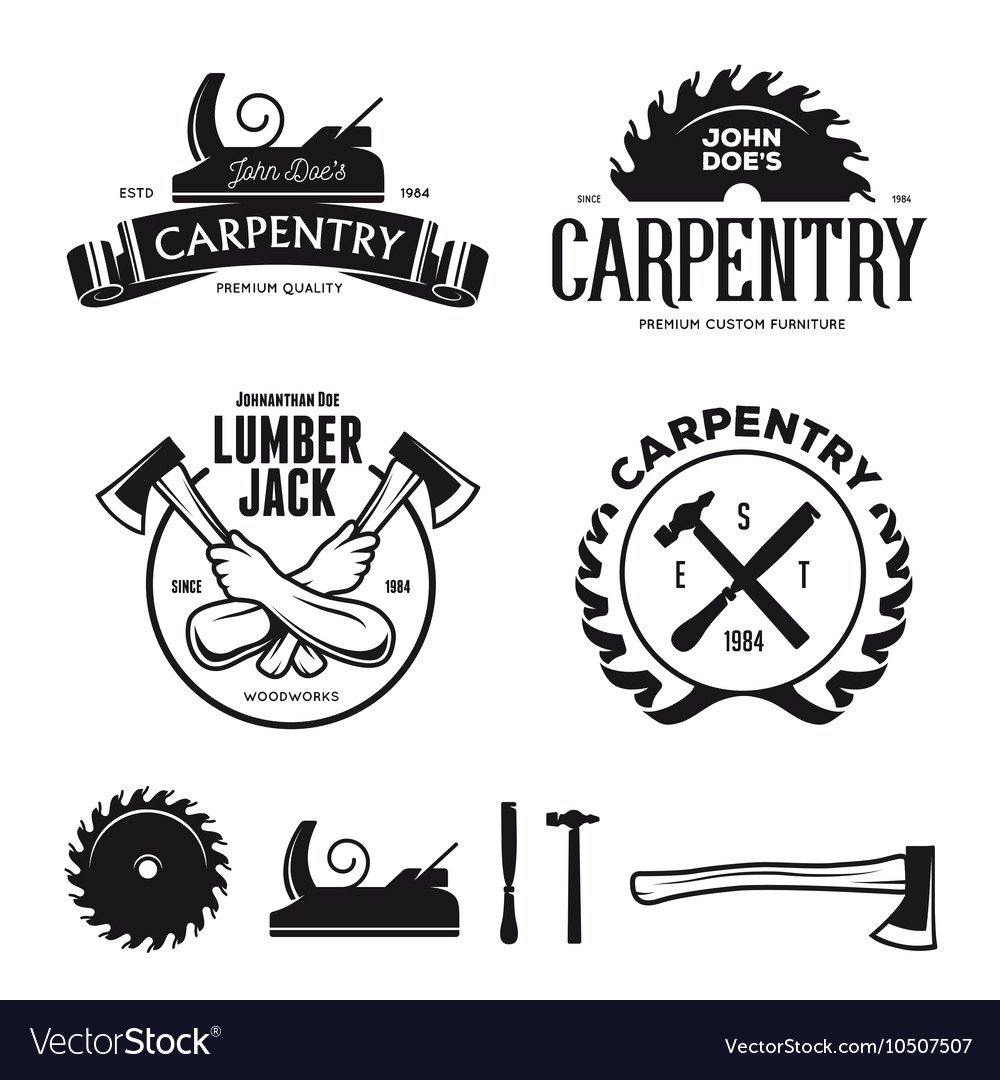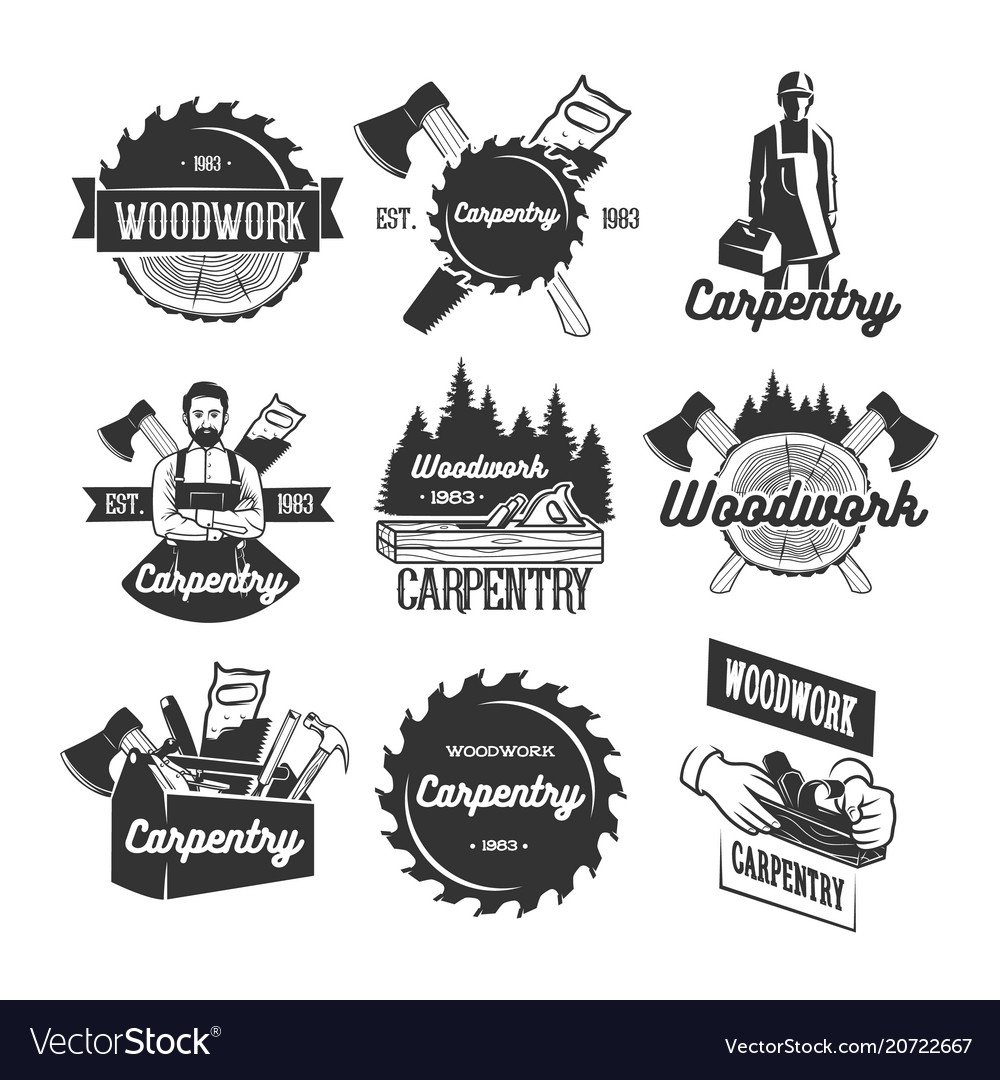 ![Векторные эмблемы для столяра]()