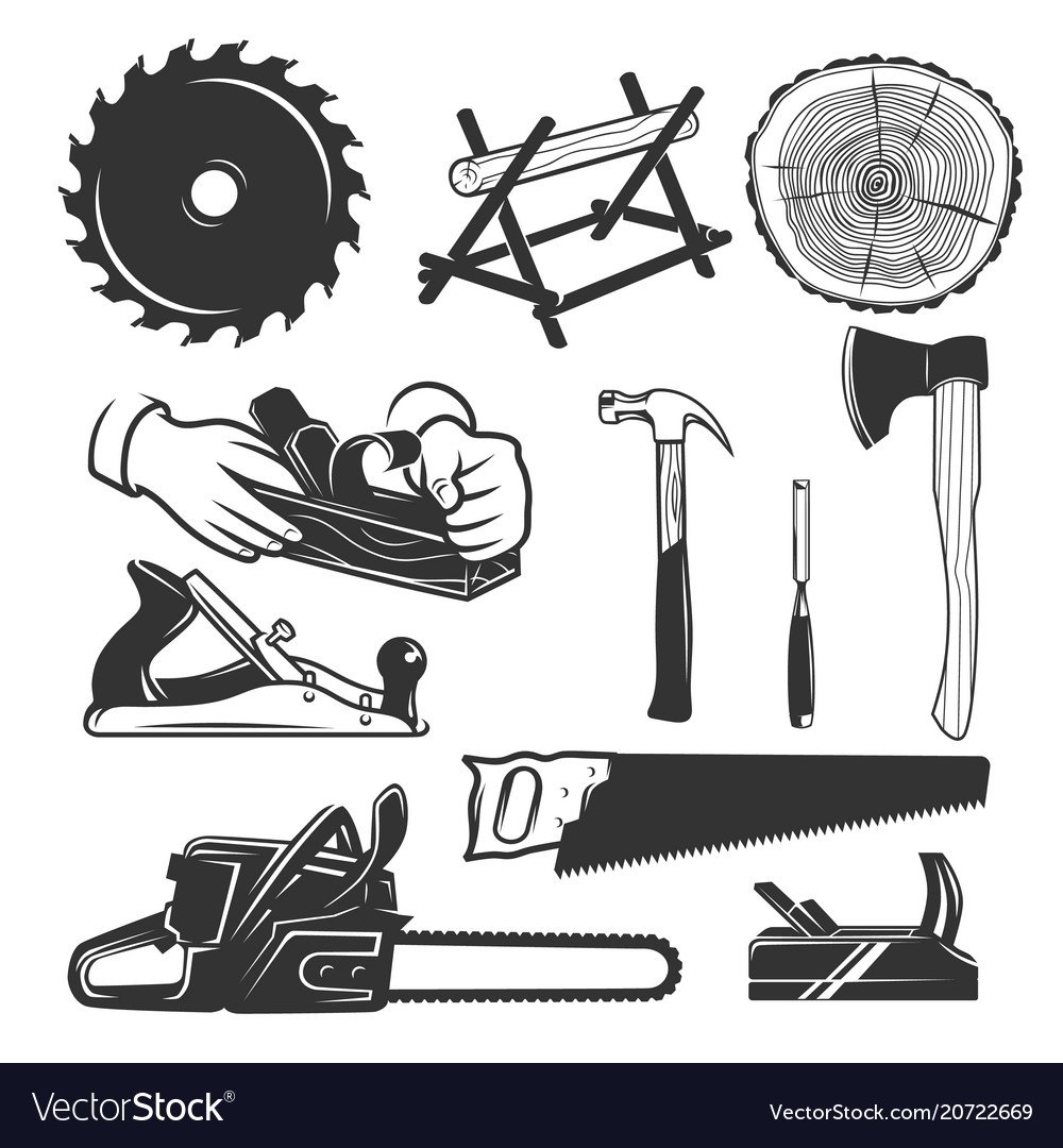 ![Столярные инструменты векторное изображение чб]()