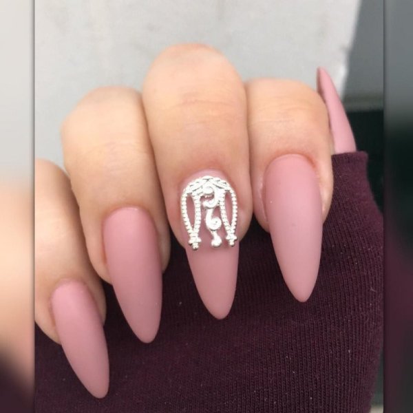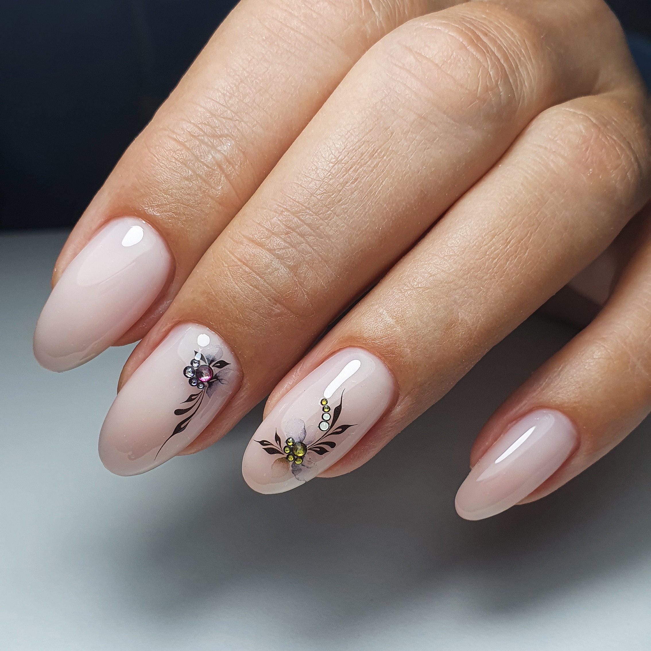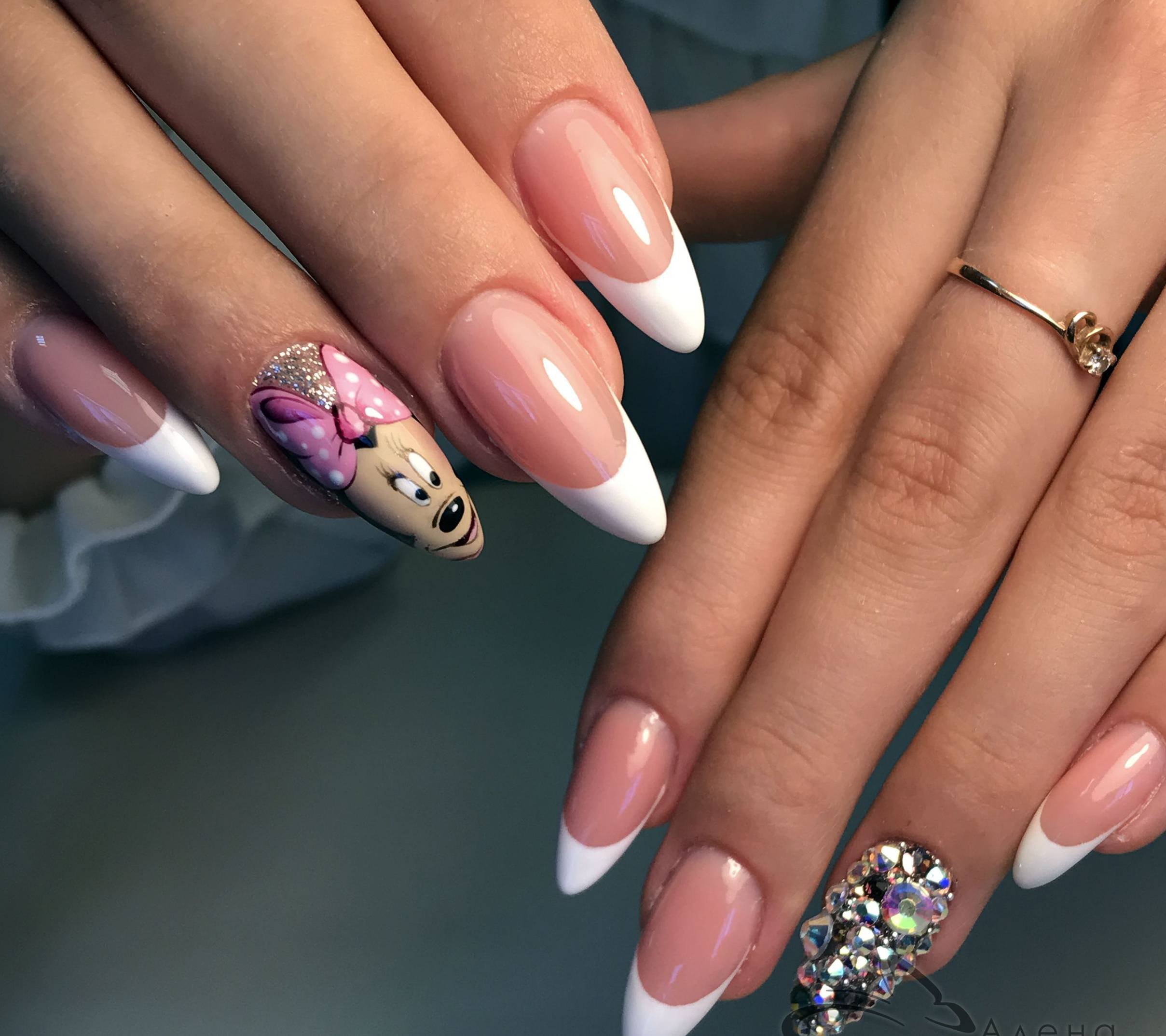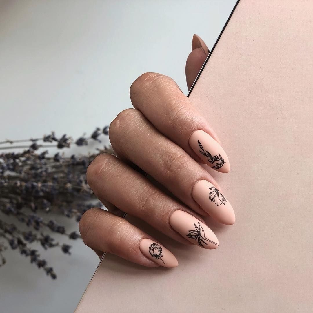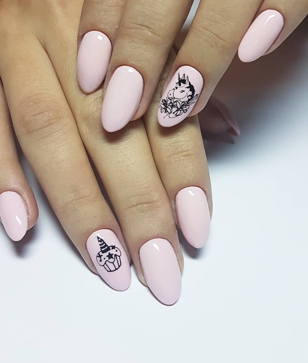 ![Нежный маникюр на миндалевидные ногти Минимализм]()