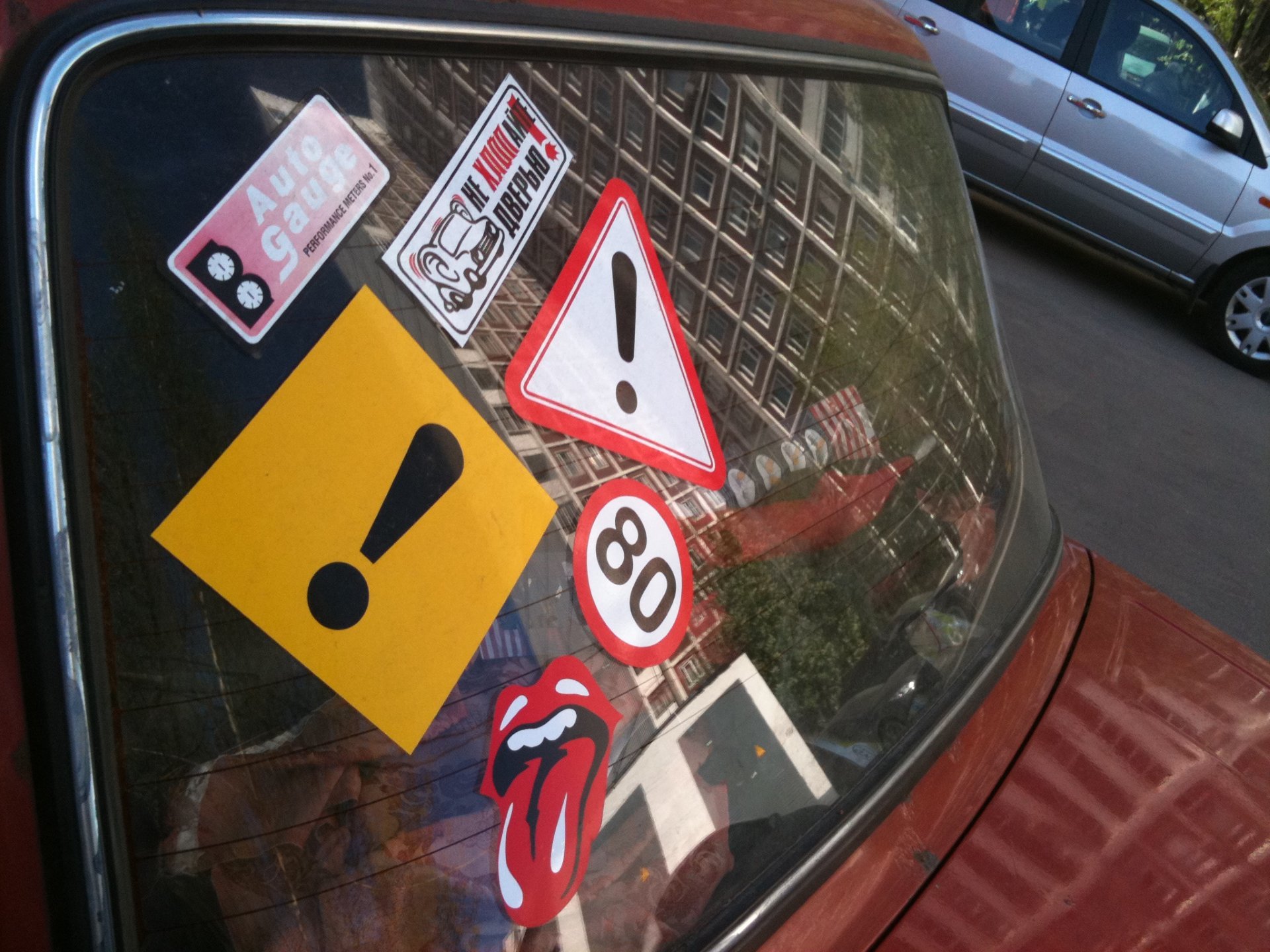 ![Наклейка восклицательный знак на авто]()