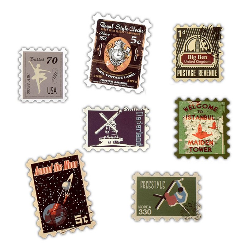 ![Винтажные марки на чемодан]()