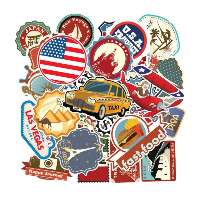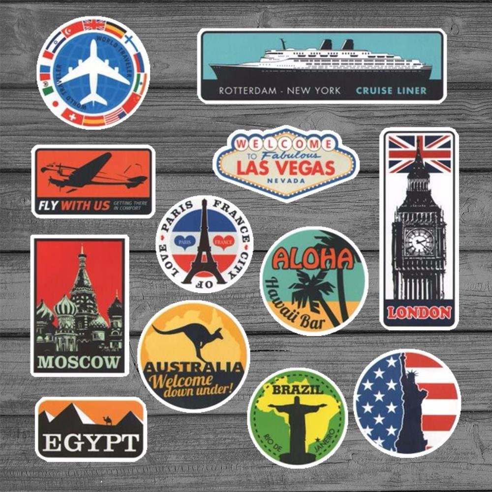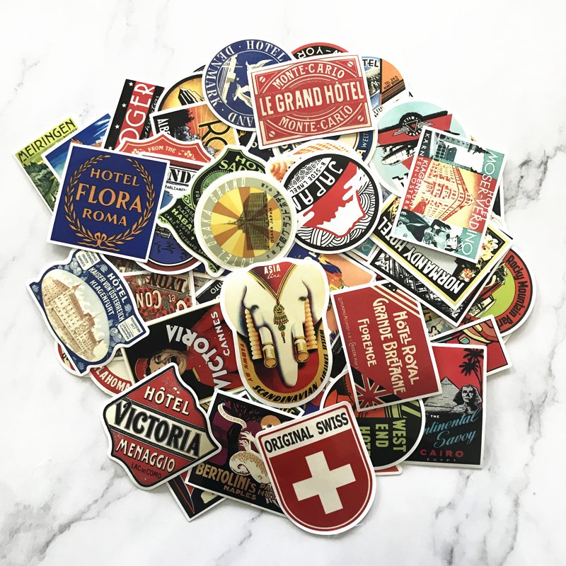 ![Ретро наклейки на чемодан путешественника]()