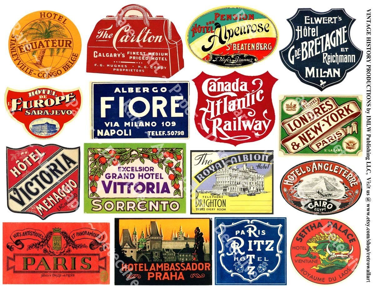 Старинные наклейки на чемоданы