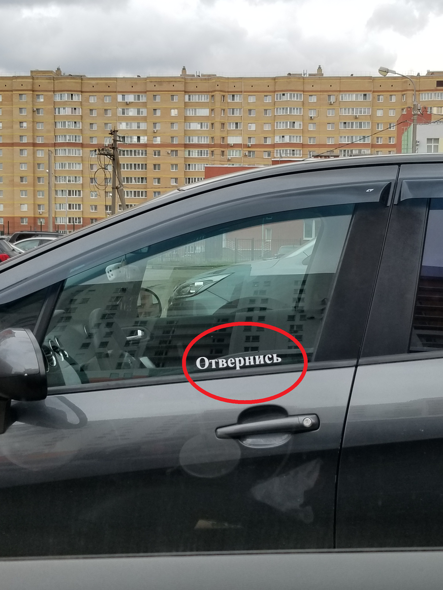![Надпись отвернись на авто]()